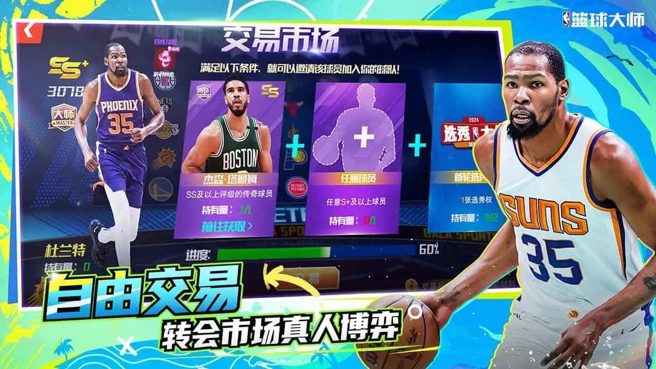 游戏简介: NBA篮球大师是一款由深圳市望尘科技有限公司制作发行的篮球经营类手游。在游戏中,玩家将扮演一名篮球球队经理人,招募精英球员,组建出色的篮球队伍,制定训练计划,参加各项比赛,提升声望。 游戏特色: 1、独创球星养成系统:游戏中涵盖了众多退役和现役球星,玩家可以调遣他们上阵,并通过养成机制让他们达到巅峰状态,从新秀到超级巨星由你一手打造。 2、3D高清赛场细节:球场上球星们的精彩表现都被完美复刻,让玩家仿佛置身于现场观赛,感受比赛的激情。 3、实时PVP对抗:玩家可以与全国百万玩家进行实时对决,建立自己的王者之师,争夺全国霸主的称号。 4、模拟球队经营:玩家可以进行球队交易、兑换巨星,管理球队薪资空间,打造自己心目中的完美阵容。 5、多样化游戏内容:游戏中还有主场建设、训练医疗系统、战术培养体系、竞猜抽奖等丰富内容,让玩家体验到更多的篮球乐趣。 游戏亮点: 1、拥有众多名将球星,真实复刻赛场表现。 2、实时PVP对抗,与全国玩家争夺王者之位。 3、养成系统自由度高,玩家可以打造属于自己的顶级球队。 4、模拟球队经营让玩家体验到管理篮球队伍的乐趣。 5、丰富多样的游戏内容,让玩家有更多选择和挑战。 游戏玩法: 1、招募球员:通过游戏中的抽奖系统获得球员,建立自己的球队阵容。 2、制定训练计划:针对球员特性制定专项训练计划,提升球员球技水平。 3、参与比赛:带领自己的球队参加各项比赛,提高声望和排名。 4、进行球队经营:管理球队的薪资空间,进行球员交易和兑换,打造最强阵容。 5、探索多样化游戏内容:包括主场建设、训练医疗系统、战术培养体系等,让玩家体验到更多有趣的玩法。 游戏优势: 1、独创的球星养成系统,让玩家体验到打造超级巨星的乐趣。 2、实时PVP对抗,让玩家与全国玩家竞技,挑战自我,争夺荣誉。 3、多样化的游戏内容,丰富的玩法,让玩家永远有新鲜感。 4、模拟球队经营让玩家扮演真正的球队经理人,管理球队,提高声望。 5、高清赛场细节刻画,让玩家仿佛置身于现场观战,感受比赛的激情。 |