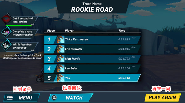 疯狂技能越野摩托车3手机版是一款极具挑战性的越野摩托车竞速游戏,玩家将扮演一名赛车专家,在各种复杂的赛道中展现驾驶技巧,与其他玩家展开激烈竞争,体验热血刺激的赛车乐趣。 游戏特色: 1、丰富的赛道和背景:游戏提供多样化的赛道和背景场景,每个赛道都有独特的视觉效果和挑战内容,让玩家感受到不同环境下的驾驶乐趣。 2、高难度的特技挑战:游戏设有多种高难度的特技挑战,需要玩家准确的操作技巧和敏捷的反应速度才能完成,考验玩家的驾驶技能。 3、逼真的物理引擎:游戏采用先进的物理引擎,让摩托车的运动更加真实,玩家需掌握车辆的惯性和重心转移等要素,才能更好地完成比赛。 4、多人竞速模式:玩家可以与其他玩家进行多人实时竞速,体验刺激的竞争乐趣,展现自己的驾驶技巧和速度。 5、精美的画面和音效:游戏拥有精美细致的画面设计和逼真的音效效果,营造出身临其境的赛车体验,让玩家沉浸其中。 游戏亮点: 1、极具挑战性的赛道设计,让玩家体验到不同难度和挑战。 2、多样化的游戏模式和赛道场景,增加了游戏的可玩性和乐趣。 3、多人竞速模式增加了游戏的竞争性和刺激感,让玩家可以和其他玩家展开激烈比赛。 4、高难度的特技挑战让玩家挑战自己的操作和反应能力,提升了游戏的挑战性和乐趣度。 5、逼真的物理引擎设计让玩家感受到真实的驾驶感觉,增加了游戏的代入感和乐趣。 游戏玩法: 1、选择赛道和赛车,准备开始比赛。 2、通过控制摩托车的加速、刹车和转向操作,完成赛道挑战。 3、在比赛中尽可能快地完成赛道,赢得比赛胜利。 4、挑战特技动作,展示驾驶技能,获得更高的评分。 5、参与多人竞速模式,与其他玩家展开激烈竞争,争夺第一名。 游戏优势: 1、丰富多样的赛道和背景设计,增加了游戏的可玩性和乐趣度。 2、高难度的特技挑战和多人竞速模式,提升了游戏的挑战性和竞争性。 3、逼真的物理引擎设计让玩家体验到真实的驾驶感觉,增加了游戏的代入感。 4、精美的画面和音效设计,营造出身临其境的赛车体验,让玩家沉浸其中。 5、多样化的游戏模式和玩法,让玩家能够尽情享受驾驶乐趣,体验不同的挑战和竞争。 怎么玩: 1、进入游戏主界面,这个大大的黄色按钮就是开始比赛。 2、选择赛道,然后按RACE就开始匹配对手了。 3、匹配完点GO TO RACE,直接进入赛道,开始愉快玩耍吧! 4、开摩托就这几个按键,起手操作推荐:左手按住油门,右手点按重心向前/向后,控制不要摔倒即可。 5、这里小编摔了个大跟头,狗啃泥,得了个倒数第一。。这里可以看下刚刚的回放,或者快速再来一把! |