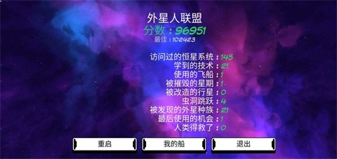 异星探险安卓移植版是一款太空主题的生存冒险游戏,玩家将扮演一名遇难的宇航员,在星际之中探索自由,并与外星种族交流生存。通过收集资源和物品,改造飞船,面对随机的危险,挑战未知的星际世界。 游戏特色: 1、多样的天体及资源:游戏中有不同类型的行星和恒星,每个天体上都存在着不同种类的资源,玩家需要不断探索和采集资源来维持生存。 2、敌人事件触发:在旅行一定次数后,会触发敌人事件,敌人会占领星体并对玩家造成损失,增加游戏的挑战性和刺激感。 3、科技系统:游戏设有多种科技组件,其中需要相邻组件搭配才能发挥效果,玩家需要巧妙搭配组件来提升飞船性能。 4、外星种族语言系统:玩家可以通过事件获得外星语言的词义,与外星种族进行交流,增加游戏的互动性和探索乐趣。 5、庞大的太空世界:游戏中的星系和天体数量繁多,玩家可以自由探索整个星际宇宙,体验太空探险的无限可能性。 游戏亮点: 1、真实的太空体验:游戏还原了太空中各种行星和恒星的特点,玩家可以在游戏中体验到真实的宇宙探险感。 2、随机性和挑战性:游戏中的事件和敌人出现都是随机的,玩家需要随机变换策略来克服各种挑战,增加游戏的刺激感和耐玩性。 3、交流系统:通过外星种族语言系统,玩家可以与外星种族进行交流,交换资源和技术,拓展游戏的互动性和探索性。 4、丰富的飞船改造系统:玩家可以通过收集资源和科技组件来改造飞船,提升飞船性能和功能,定制符合自己风格的飞船。 5、探索未知的星际世界:游戏中有着庞大的星际世界等待玩家探索,每个星系和天体都有独特的特点和资源,冒险永不止步。 游戏玩法: 1、探索与采集:在不同的天体中探索并采集资源,用于改造飞船和维持生存。 2、与外星种族交流:通过外星语言系统学习词义,与外星种族进行交流,获取资源和技术。 3、敌人事件处理:当敌人事件触发时,需要巧妙应对敌人的威胁,保护飞船和资源。 4、科技搭配:合理搭配科技组件,提升飞船性能和功能,适应不同的挑战和环境。 5、飞船改造:收集资源和科技组件,改造飞船,打造强大的太空探险工具,展开更深层次的探索和冒险。 游戏优势: 1、独特的太空探险体验:《异星探险》还原了真实的太空世界,让玩家体验到探险与冒险的乐趣。 2、随机性与挑战性:游戏中的事件和敌人都是随机出现的,玩家需要灵活应对各种挑战和变化,增加游戏的耐玩性。 3、交流和互动:通过外星语言系统,玩家可以与外星种族进行交流,拓展游戏的互动性和探索性,带来全新的体验。 4、丰富的飞船改造系统:游戏中有着多样化的飞船改造系统,玩家可以根据自己的喜好和需求定制飞船,提升游戏的自由度和乐趣。 5、庞大的星际世界:游戏中包含了数不清的星系和天体,玩家可以无限探索,每次探险都会有新的发现和挑战,让游戏充满无限可能性。 结局攻略: 1、绿色结局(简单) 解锁坐标后直接去绿色坐标星系,登陆空间站直接完成 2、蓝色结局(一般) 必要科技“死亡种子”,去蓝色坐标星系的恒星种下种子,让恒星变成黑洞,”死亡种子”前期没学到可以去红色坐标星系触发剧情,必送这个技术 3、红色结局(中等) 必要科技“死亡种子”,还有个可以在黑洞之间实现穿越的技术具体名字没记住暂时就叫”黑洞穿越”吧,先去红色坐标星系触发剧情,必送上面两个科技,然后去绿色坐标星系的恒星种下死亡种子,就可以从黑洞穿越回地球完成结局 4、黄色结局(难) 必要科技“死亡种子”“黑洞穿越”“生命种子”,至少带一组人类。老规矩先去红色坐标星系解锁两个技术,“生命种子”需要探索的过程学习,到达红色坐标星系一直往下走到最后一个星系,你会发现空间折叠器显示能够迁跃的距离根本到达不了黄色坐标星系,这时候就需要在所在星系的恒星种下死亡种子,造一个黑洞传送到黄色坐标星系附近的黑洞,到达黄色坐标星系后点进星系上唯一一个岩石,点击右下的种植生命种子,把岩石星球变成花园星球,再登陆触发黄色结局,没有带人类不能触发结局 |