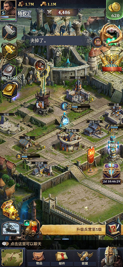 王权争霸手游官方版是一款陆空双线战争策略游戏,配以精心设计的场景和背景音乐,真正展现了欧洲中世纪的风貌。游戏中拥有多个独特的场景,每个场景都有不同的玩法,供玩家自由探索。丰富的英雄角色可供玩家招募,通过灵活的搭配和技巧释放华丽的战争魅力,让玩家沉浸在这个欧洲中世纪的战争背景中,并在攻城拔寨的过程中获取丰厚的资源。在这里你将扮演一位指挥官,招募强大的英雄和兵种,组建专属的阵容,并进行培养和训练;发挥自己的战略头脑,制定各种策略,在攻城拔寨的过程中获取丰厚的资源。如果你喜欢这类型的游戏,不妨下载尝试一下! 游戏特色 【在战争中成为王者】 君王的意志犹如钢铁!无数勇士聚集在你的麾下。培养并带领你的英雄们,让他们发挥出最大的力量,信赖他们、依靠他们,建立你自己的圆桌骑士团。 【君王的威严笼罩四方】 伟大的君主从不惧怕战争,用剑锋指向你的敌人,带领你的军团让宿敌臣服在你的脚下,打下一片辽阔的疆土,成为这片土地上最具权利的人。 【君王的仁慈庇护万民】 在王权争霸建立最繁华的城市,站在城堡的露台,俯瞰你的子民,看到他们安居乐业,看到他们的旗帜飘扬成海,听到他们真诚的欢呼汇聚成一个声音:吾王万岁! 游戏玩法 王权争霸主要奖励--金币、经验药水、精炼石、经验宝物 日常挑战中分为四种挑战,其中经验和金币挑战为每日开启,装备精炼在每周一、三、五开启,宝物经验为每周二、四、六开启。 副本难度随着等级提升,关卡越难,获得的物品数量将会更多,品质也会更好。 金币挑战: 在金币副本中,每波敌人为随机出现,根据转盘转动的结果,决定下一波怪的数量和金币奖励倍数。最后一波刷新则有几率出现隐藏BOSS! 经验副本、装备精炼、宝物经验: 这王权争霸三个副本的玩法类似,但副本中会面对不同的Boss,但同样的副本结束时都会根据主公队伍伤害BOSS血量的百分比来获取相应奖励。 快速升级方法 1、每日任务 完成新手指引后,会开启每日任务,根据任务提示去完成,可以获得大量的经验 2、完成主线和支线任务 前期主线支线任务的升级速度很快,在有体力的情况下选择优先完成。可以用钻石去购买体力加快任务完成进度 3、副本经验 副本可以获得大量的经验以及各种材料,这里也是提高等级的方法 4、每日限定副本 限定副本里有经验和材料获取,每天记得定期去完成 王权争霸最新版新手攻略 1、3天新手期合理利用:我们进行游戏时会有3天的新手期时间,利用这三天时间我们可以快速扩充军队和升级完所有设施,值得留意的是只要我们不升到6级是一直享有的,因此一定要注意这点。 2、多备军:由于只有3天时间保护期,因此尽一切所能扩充军队是一个很核心的内容,我们没法保证我们周围充满敌意的敌人会对于我们怎么样,为了能够相信的就是自己军队,保证好军队有充足的粮食即可。 3、研发科技:科技是有效改善我们整个城堡情况,无论经济和军事,因此马不停蹄的研发科技是十分有用的。 4、用好每一份土地:我们早期的土地还是十分有限,因此尽量全部使用上不要做任何预留,因为这对于我们后期是没有意义,当我们将手头上所有土地开发后即可更好的强化我们整个城堡。 5、合理使用道具:游戏里面有众多道具供给我们使用,但是注意合理运用才能改善我们的情况,一般vip建议留到准备大发展时期才运用,而其他加速道具能轻微加速就是用,确保其使用效率。 6、加入联盟:加入一个说共同语言的联盟所产生的效果远大于你自己独自干,因此一定要记得去找一个和自己一样语言的工会才行。 7、多完成任务:任务所提供的奖励十分丰盛,多完成任务即可顺利给我们前期带来巨大收益。 8、合理利用金币:金币来源由于十分小,因此尽量不要乱用,以免被浪费情况。 王权争霸最新版如何分配建筑 一、 经济区的建筑分配 经济区的建筑有农田、伐木场、行军帐篷、急求帐篷、铁矿厂、秘银矿场6种建筑。在游戏前期,农田和伐木场是极为重要的建筑,前期的粮食、木材资源时建造和升级其他建筑的基础,因此,小编推荐,新手玩家在游戏前期应该多建造农田和伐木场并且根据游戏任务的指引来提高建筑等级。 当玩家开启讨伐系统后就可以多建造行军帐篷和急救帐篷,这两个建筑是军事区建筑建造和升级的前提条件,同时可以缩短小兵训练时间。在游戏进度推进到后期后,就应该建筑和升级铁矿厂和秘银矿场,这两个建筑产出的资源在游戏后期极为重要。 二、 军事区的建筑分配 军事区是游戏中战斗系统的关键,在军事区玩家可以训练军队,铸造装备。军事区的建筑等级提升要随着其他区域建筑等级达到一定条件后才可以提升。军事区的建筑推荐全部能升多少级就升多少级,毕竟游戏中的兵种是存在克制关系的,各种兵力均衡发展,才能提高军队战斗力。 三、 核心区的建筑分配 相较于其他区域,核心区是最不太需要考虑建筑资源分配的区域了,因为核心区只有两个建筑,仓库和学院。升级仓库可以提高基础资源的容纳量,但是到了游戏后期,基础资源难以出现爆仓的情况,所以小编推荐玩家们优先升级学院,学院里的科技系统,无论是对战斗或者是资源生产都有很大的帮助。 四、 外交区的建筑分配 外交区有三种建筑,大使馆、战争大厅和市场,这三种建筑,都和联盟玩法有关。小编建议,