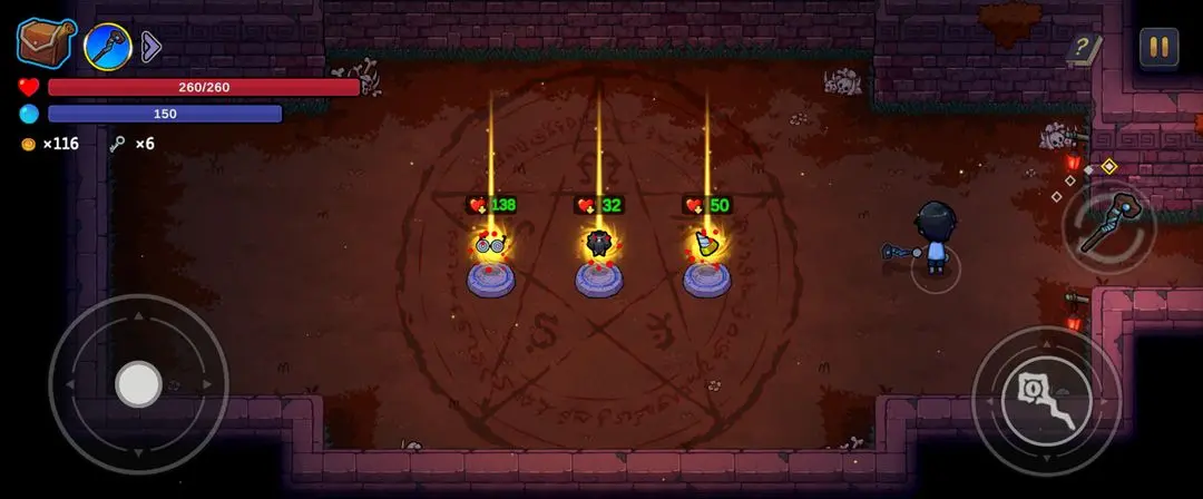 魔法工艺九游版是由B站独家代理的买断制俯视角魔法动作肉鸽手游,玩家在游戏中将扮演穿越到被古神入侵的魔法世界的勇者,通过使用 “魔法编程” 自由组合100多种法术符文、100多把法杖和70多件遗物,搭配出追踪、分裂、弹射等千奇百怪的复合法术,比如 “追踪 + 弹射 + 分裂” 的强力组合,每局都是全新体验。魔法工艺手游内置五大章节、千种关卡,有随机商店、工坊和解谜,冒险里的魔药、诅咒还会带来不同效果。心动的小伙伴快来下载,体验原汁原味的指尖魔法冒险! 游戏特色 —Q版的画风— 魔性的画风,奇异的生物,无厘头的剧情,误入异世界的主角如何与这些可爱的蘑菇和触手共存? 来自异世界的大法师即将踏上独属于他的魔法创造之路! —自由的组合— 多样的法术,独特的法杖,奇妙的组合,被选中的命运主角将如何发挥他的聪明才智挑战搭配变化? 通过击败怪物获得各种特性的法术,组合出仅属于你的禁咒魔法吧! —随机的强化— 随机的祝福,神秘的药水,特殊的灵魂,探索之中遇见的伙伴们又将给主角带来怎样的新鲜体验? 每次挑战都会是全新的体验,选择你的天赋,加强自己的能力吧! —炫酷的战斗— 森林的异变,城堡的古旧,时空裂缝的混乱,拔出祭坛之上法杖的你历经多次战斗,击败怪物,获得了足以拯救世界的力量,你最终的选择,将何去何从? 魔法工艺九游版新手攻略 一、基础游戏思路 在官方的游戏介绍中有【法术构筑】和【法术搭配】这样的关键词,这也是魔法工艺的核心玩法:编程。 在游戏过程中,我们会不断获得各种道具来强化自身战力,其中【法杖】将作为载体发射各种强化过的【法术】。而法杖上的法术遵循【从左到右】的结算形式,因此,法杖的各种槽位与法术摆放的顺序,会产生奇妙的反应,即使相同的法术构筑,也会因不同的摆放顺序,结算出完全不同的结果。例如: 在【魔法弹】右侧放置【奥数新星】与【多重施法】,则我们只会释放出1个【魔法弹】与1个【奥数新星】; 在【多重施法】右侧放置【奥数新星】【魔法弹】,则我们会释放出2个【奥数新星】且【奥数新星】会持续释放最多20次【魔法弹】。这就是因为法杖上法术摆放顺序不同而结算出的不同结果。 所以,在游戏过程中,我们一定要仔细阅读法术说明,按照从左到右的顺序摆放法术,争取最高伤害,创造最大收益。 一句话总结的话:被动靠左、法术靠右。 二、法杖与法术编程顺序 有了前面的介绍,更推荐大家进入游戏中尝试基础的法术编程。我们的法术会按照在法杖上摆放的顺序去结算,完成全部结算时,计算冷却时间,再重新计算。 也就是说,每次施法会经历:按从左到右的顺序结算法术、计算施法间隔、计算法杖冷却、完成施法这几个步骤。 如图所示的法杖,我们每次施法时,会先将【多重施法】的效果施加在右边的法术上,之后我们释放2个【奥数新星】,在法杖自身0.X秒的施法间隔后,我们释放2个【魔法弹】。之后法杖结算停止,【奥数新星】会持续释放【魔法弹】直到持续时间结束。这就是基础的法术编程过程。 目前,魔法工艺的所有法杖结算顺序都是从左到右,所以大家在游戏时也要注意法术放置顺序,一定要多思考,多尝试~ 三、游戏内各种资源 游戏内我们获取的各种资源,可以笼统分为【局内用】和【局外用】。 【局外用】资源有:混沌水晶(后简称水晶)、古神之血(后简称血)、混沌核心(后简称核心),它们可以升级和解锁各种局外养成,帮助你更顺利的进行游戏。 【水晶】可以在营地左上角NPC处升级【天赋】,天赋种类非常多样,全部点满大概需要10000+【水晶】和200+【血】。需要注意的是,一开始能升级的【天赋】数量有限,我们可以通过【血】来解锁更多可升级天赋; 【血】不仅可以解锁更多天赋,还可以在营地右上角NPC出升级【研究】,研究的内容同样很多,全部研究大概需要300+的【血】,不仅可以提升药水携带数量、初始钥匙数量、重筑炉使用次数等,还可以增加游戏内奖励,包括能回血的【浆果丛】,能掉落金币或钥匙的【坚固保险箱】,以及包含众多神秘法术获取途径的【食腐舌簇】。另外,通过【研究】,我们还能解锁【泉水房】来回复生命值与消除诅咒,在游戏后期还可以选择【捷径】快速通关挑战极限~ 另外,【血】还可以在在营地左下角NPC处升级【套装】,一些套装在升级后才会焕发完整战力~ 随着剧情推进,我们会获得【核心】,可以用来在营地最左侧NPC处解锁各种【法术包】与【法术被动】,全部解锁大概需要90+【核心】。 不同法术包内含各种法术,这也是《魔法工艺》丰富多样玩法的源泉。其中部分法术如【二重奏】【次元行者】【奥数屏障】非常强力,而【法术被动】不仅可以让我们拾取法术时有更多选择,还能锁定某些法术下次再选择,提升非常之大。 综合来说,各种【局外用】资源需要在局内战斗获取,而这些资源又会强化大家的局内战力。前期一些资源我们不用过度积攒,应尽快将资源转化为战力,增加实力帮助我们探索更远的关卡获得更多资源,形成良性循环。 【局内用】资源有:金币、钥匙、生命值,不同于【局外用】资源,每次对局结束时【局内用】资源都会留在游戏中,无法带出。 其中,金币可以让我们使用【重筑炉】重铸法术或在【商店】中购买法杖、法术、药水等道具,金币还会与部分遗物和某个独特法术联动,