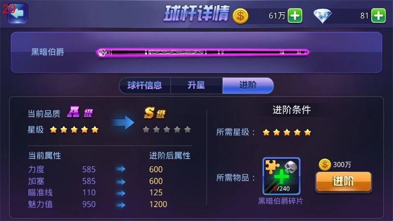 腾讯桌球2026官方版是一款模拟现实桌球的休闲竞技手游,游戏采用简单的操作方式,酷炫时尚的动画特效,真实的物理参数,给玩家带来身临其境的桌球体验。游戏真实还原现实桌球玩法,玩家需要操控球杆,瞄准你的目标号码,控制好力度击打白球,展现你实力的时候到了!腾讯桌球游戏还提供了丰富的玩法,包括1V1比赛、3人快乐场、8人锦标赛、斯诺克等,玩家可以自由选择游玩,你还可以与好友一起进行对战,看看孰强孰弱,能否一杆清台,快来下载试试吧! 游戏特色 1、演绎经典 《腾讯桌球》还原现实桌球玩法,配以真实物理参数,让广大桌球爱好者玩的得心应手,杆精利落。 2、酷炫球杆 尖端巧粉,杆杆随心,游戏中配置多种属性、不同品质外形的球杆和球桌,超炫球技,彰显至尊身份。 3、精彩赛事 赛事周积分排行榜、赛事总积分、1v1总战绩、财富榜,多种欢乐赛事汇聚《腾讯桌球》。 4、竞技对战 《腾讯桌球》游戏设有1V1匹配、3人欢乐场、8人锦标赛、斯诺克等玩法,玩家可以自由选择参与,并用自己精湛的技巧来获得丰厚的奖金。 游戏亮点 1、还原真实,击球体验 2、多种模式,多种玩法任你挑选 3、900+酷炫球杆,任你挑选 4、闯关解谜,乐趣无穷 腾讯桌球清台攻略 一、高杆技巧:让白球向前冲 高杆是让白球击打目标球后继续向前运动的技巧,适用于需要白球跟进走位的场景。 1、操作要点: 1)击球点选择白球的上半部分(12点钟方向); 2)力度控制在50-70%为佳。 2、实战应用: 1)打进目标球后,白球继续前进走位下一颗球; 2)制造连续进攻机会; 3)调整白球最终停留位置。 二、低杆技巧:让白球神奇回退 低杆能让白球在击打目标球后产生回旋,向反方向运动,是高级走位必备技能。 1、操作要点: 1)击球点选择白球的下半部分(6点钟方向); 2)力度根据需要的回退距离调整。 2、常见误区: 1)击球点太低,会导致跳球; 2)力度太小,回退效果不明显; 3)杆法不纯,会导致白球偏离预期路线。 三、基础走位:掌控全局的关键 走位是区分普通玩家和高手的核心技能,好的走位能让你轻松连续得分。 1、基础走位原则: 1)先思考白球的最终停留位置,再选择杆法; 2)利用台边反弹增加走位选择; 3)合理运用高杆、低杆和中杆组合。 2、练习方法: 1)从简单直线球开始练习走位; 2)逐步增加角度和距离; 3)记录每次走位的效果并调整。 腾讯桌球球杆升星、进阶系统教程 1、 球杆信息 在这里我们可以首先可以看到当前球杆的品质以及可以升级后的最高品质S还有属性成长的预览。 点击“满级预览”可以展示球杆精致的特效。可以看到黑暗伯爵的随着升星和进阶后,自身特效也开始发生了变化,达到S级之后杆头更是散发出一股冷酷而肃杀的光芒,让人不寒而栗,战意全无。不止黑暗伯爵如此,所有的球杆在升星进阶后都会产生变化。 2、升星 升星需要对应等级的星木以及熟练度。我们首先需要把球杆的熟练度提升到满值,然后在有足够的同等级球杆的升星木的情况下即可点击升星。 以A级球杆“黑暗伯爵“为例,他需要升星的星木即是A级星木。同理B级球杆需要B级星木,C级球杆需要C级星木。 熟练度在装备该球杆竞技的时候自动获得,也可以通过任务、活动或抽奖等获得熟练卡,使用后也能增加部分熟练度。 当熟练度满了并且材料也足够之后,即可进行升星啦!升星成功后的提示如下图: 3、 进阶 球杆达到5星后,就可进阶了。每次进阶可提升球杆一个等级,按顺序是C<B<A<S。 进阶材料需要对应球杆的碎片和金币,收集足够后就可以进阶了。 成功进阶S级!操作方法是不是很简单呢。小师妹衷心的祝愿大家早日获得自己心目中的那杆绝世好杆~ PS:只有永久球杆才可以升星进阶哦! 游戏亮点 1.联网对战---多场景体验异国风采,独创技巧得分系统,与全球玩家同台竞技,丰富道具体验更精彩。 2.优质画面---升级游戏体验:协调的色彩搭配和高清晰的画面,让人眼前一亮;更细腻的光影设计,更流畅的滚动效果,增强2D视觉。 3.炫丽特效---让游戏更精彩:不仅增强了游戏趣味性、美化度,多种提示性特效更使游戏操作简单,易上手。 4.商城道具---各类瞄准器、球杆、球桌等,让操作更简单,让游戏更丰富赶快一起进入这精彩绝伦的台球帝国吧! 游戏优势 1.真实的2D台球游戏,精准的进球,激动人心的赛事,究竟谁才是冠军?让我们拭目以待。 2.全面还原现实中的桌球玩法,并添加了各种模式玩法和区域特色玩法。 3.还原现实桌球玩法,绚丽的动画特效,配以真实的物理参数。 4.与来自世界各地的玩家同台竞技。 更新日志 v3.57.0版本 提升体验,修复部分问题。 |