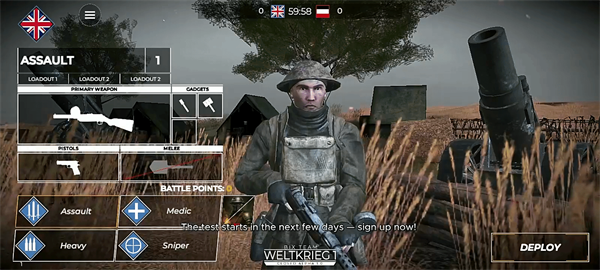 一战火灾风暴国际版最新版是一款以第一次世界大战为背景的移动射击游戏,专为手机玩家打造。游戏不仅以复古风格的3D画面精细再现了一战时期的战场氛围、武器与装备,更从经典射击作品中汲取灵感,设计了突击、医疗、狙击等多类职业,每类职业都拥有独特的技能与战斗定位,强调团队配合与战术策略。游戏针对移动设备进行全面优化,操作流畅直观,并融入阵营选择、武器切换、地形利用等丰富机制,在提供沉浸式单兵体验的同时,也格外注重团队协作与战场适应性,让玩家在掌上即可感受历史战役的激烈与深度。 游戏特色 1、背景设定 游戏以第一次世界大战为背景,玩家将体验到那个时代的战争环境和战术策略。 2、职业设定 游戏中包含多种职业角色,如突击兵、医疗兵、狙击兵等,每个职业都有其独特的技能和作用。 3、画面风格 采用复古风格的3D画面,真实还原了一战时期的武器和装备,给玩家带来沉浸式的游戏体验。 4、系统优化 游戏针对移动设备进行了全面优化,操作流畅,适合在各种设备上运行。 一战火灾风暴国际版中文设置教程 1、打开一战火灾风暴国际版手游,点击【SETTINGS】进入设置 2、在【GENERAL】功能栏,点击切换中文 PS:需要提升等级解锁 一战火灾风暴国际版手游玩法指南 1、选择合适的阵营 不同阵营拥有独特的战术风格与装备配置,新手建议从平衡型阵营开始体验,便于熟悉游戏机制。 2、灵活切换武器 根据战场局势适时更换霰弹枪、步枪或狙击枪等武器,以应对不同距离的战斗,提高适应性与生存能力。 3、善用职业特性 充分发挥各职业优势:医疗兵及时治疗队友,突击兵专注前线突破,狙击兵提供远距离火力支援,协同发挥团队作用。 4、注重地形与掩体利用 巧妙借助地形回避敌方攻击,占据有利掩体并寻找最佳射击视角,以保持攻防优势。 5、依靠团队协作取胜 避免孤军深入陷入包围,多与队友沟通配合,通过协同行动赢得最终胜利。 游戏亮点 1、超多武器自由选择,找到自己喜欢的武器使用。 2、战斗过程十分快速,因此玩家需要制定多种计划。 3、开局可以选择不同模式游玩,发现更多的乐趣。 游戏优势 提供丰富的武器选择,玩家可以根据个人喜好挑选适合的战斗装备。 快节奏的战斗体验,要求玩家迅速制定并调整策略以应对多变的战场情况。 多样化的游戏模式,开局即可选择不同玩法,探索更多战斗乐趣。 真实再现第一次世界大战场景,参与逼真的堑壕战与战术对抗。 战斗地图基于历史真实地点设计,如索姆河等标志性战场,增强沉浸感。 支持动态多人在线对战,在团队死亡竞赛模式中与其他玩家协同作战。 基于职业的系统设计,提供多种士兵职业选项,每种职业配备独特技能和武器。 各类士兵职业适应不同的游戏风格,无论是突击、狙击还是支援都能找到合适角色。 强调团队合作的重要性,在快节奏的多人战斗中实现战术配合与策略执行。 |