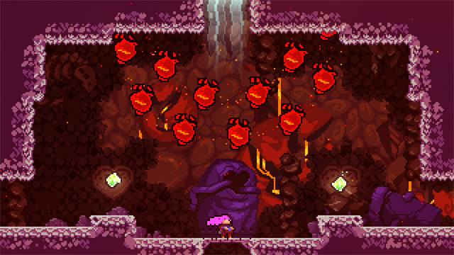蔚蓝Celeste手机版2026是一款2D硬核平台跳跃独立游戏,玩家将操控少女玛德琳,凭借跳跃、爬墙、空中冲刺的极简操作攀登塞莱斯特山,旅途既是跨越尖刺、机关的物理挑战,也是直面内心焦虑的自我救赎之旅。游戏关卡分8章A/B/C三面与免费DLC第九章,每章有专属机制,搭配草莓、水晶心等收集物丰富探索维度。蔚蓝游戏手机版采用分层难度设计,A面简单适配新手,B/C面难度更高适合进阶的高手,感兴趣的朋友快来下载挑战吧! 游戏特色 1、这是一段单人冒险旅程,由像妈妈口吻一样的叙事推动,其中有魅力非凡的角色和关于自我发现的感人故事待玩家发现 2、对于这条宏伟的山脉,设计者设置了超过 700 个场景的硬核平台挑战,其中还有众多诡异的秘密供探索 3、残酷的隐藏故事线只为最勇敢的登山者打造,等待着玩家解锁 4、包含超过 2 小时的原创音乐,超炫的现场钢琴和富有节奏感的合成节拍令人耳目一新 5、游戏控制简单,上手容易,只需跳跃、空中突进和攀登即可,但若想掌握高超的技巧成为大师也绝非易事,玩家需要从每一次失败中吸取教训,不断进步。光速重生将助您勇攀高峰,挑战千难万险,解开神秘山峰的谜团。 蔚蓝Celeste人物介绍 1、玛德琳 玛德琳是《Celeste》的主角,由玩家控制。她与焦虑和抑郁作斗争,这也是她攀登塞莱斯特山的原因。玛德琳会疾驰,从红色变白,最后变成青色。她的头发也变成粉色,表明她在《Reflection》结尾可以冲刺两次。玛德琳体内一个名叫巴德琳的敌对部分经常在她攀登时与她对峙。 玛德琳也出现在《Celeste 64》和《Towerfall》中。 玩家可以在存档选择界面为玛德琳选择其他名字。在这种情况下,角色们会使用这个名字。 2、玛德琳的妈妈 玛德琳的妈妈,在《旧遗址A面》结尾打电话给她,游戏中她没有名字,只是叫妈妈。这是她唯一出现的对话,尽管她的照片可以在《告别》中看到。她担心玛德琳,但表现出支持。 3、绿发人(前任) 一个绿发的人出现在《干预(旧地点)》的结尾动画中。他们没有被点名,但游戏文件中称他们为玛德琳的前任。 4、巴德林 巴德琳是玛德琳的另一个自我。她首次出现在《旧址》,打破了镜子。之后,她不断劝说玛德琳放弃攀登塞莱斯特山,甚至在《反射》开头导致她摔倒。随后,玛德琳开始与巴德琳争斗,直到她最终认输。 随后,巴德琳同意与玛德琳合作,尽管坠落,仍尝试再次攀登塞莱斯特山。这通过巴德琳给玛德琳第二次冲刺并以巴德琳球的形式增强她来体现。在《告别》中,巴德琳与玛德琳争吵,试图阻止她跟随鸟,限制了第二次冲刺的使用频率,需要双冲刺补充。 5、西奥 西奥是另一位登山者,玛德琳在第1、2或3章中遇到他。他比玛德琳不那么严肃,也更随和。他爬山主要是为了拍些照片,准备他的Instapix资料。旅途中,他还和玛德琳自拍了几张(视路线而定两三张)。他们在不同场合互相帮助:在《黄金岭》结尾,西奥在玛德琳惊恐发作时安抚她;玛德琳将被困在镜殿水晶中的西奥带到出口;他们在《反思》中讨论精神问题,最后在尾声中参加派对。他还出现在《告别》结尾动画中,视频通话中试图支持玛德琳,帮助她应对奶奶的去世。 在他的InstaPix账号中,他提到有一只名叫Spoons的猫(它也出现在《告别》中的视频通话中)。西奥有一个名叫卡洛斯的祖父和一个名叫亚历克斯的妹妹。 6、卡洛斯 卡洛斯是西奥已故祖父的名字,他提到祖父是教他认识塞莱斯特山的人。西奥在《反思》开头提到过他,但他的名字只在《告别》中透露,并附上了他的照片,西奥将照片展示给玛德琳看。这张照片显示卡洛斯和奶奶在一起,暗示他们是朋友,一起攀登塞莱斯特山。 7、亚历克斯 亚历克斯是西奥的妹妹。她的性格与玛德琳相似,正如西奥在《反思》开头提到的那样。 在《Celeste 64》中,揭示Madeline和Alex在Theo的安排下正在交往。 8、大城先生 大城先生是管理天界度假村的幽灵。在第三章中,他陪伴玛德琳,试图让她留在酒店。然而,在巴德琳批评他和他的度假村后,他对玛德琳发火,追赶她。 他在片尾字幕中可以看到他用灰尘兔子帮忙打扫酒店,表明他已经克服了焦虑。他也出现在尾声中,参加了鸟类告诉他的派对。 9、奶奶 奶奶是住在塞莱斯特山上的角色。起初表现得脾气暴躁且不屑一顾,她试图帮助玛德琳攀爬,并给予有用建议,甚至在玛德琳在《反射》中跌落后支持她,建议她找到并与她的另一部分交谈。奶奶在《告别》事件发生前不久去世,这成为本章的关键情节。在该章节结尾,西奥展示了玛德琳·奶奶年轻时的照片;在那里,奶奶的名字被揭示为塞莉亚。 10、鸟 鸟是一个经常与奶奶一起出现的角色;人们认为这只鸟是奶奶的宠物。它教会玩家游戏的作和一些技术。在《告别》中,玛德琳试图追赶鸟儿去见奶奶,认为她就在附近。这导致它飞走,直到玛德琳终于抓住了它。后来,鸟变成了一个实体,将玛德琳向右甩去。 蔚蓝Celeste手机版第四章攻略 第四章故事前身是天界度假村,后者是镜殿,故事发生在一座风悬崖上,攀登天穹山。在Celeste的主线叙事中,这一章标志着一个重要的转折点,是故事七个主要章节中的“中间”章节。本章引入了游戏中的若干新元素,包括弹跳云和绿色气泡;这也是奶奶自序章以来的首次登场。 1、A面 第四章的A面难度与《天际度假村》相比并没有太大提升,拥有更多开放的关卡设计,且与