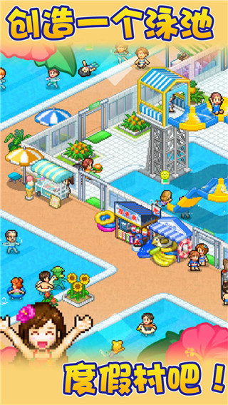 开罗水上乐园物语2026汉化版(夏日水上乐园物语),是由开罗出品的一款水上乐园模拟经营类手机游戏,和往常的开罗游戏的经营玩法不同的是,在这款游戏中你将要经营的是一家水上乐园,让客人在炎炎烈日里尽享清凉,体验度假的乐趣。而且还能跟客人成为朋友,畅游在社交网络里,如果成为热门话题,还可以与前来的客人通过社交平台成为好友,成为在社交平台大放异彩的渡假村,并且也能依照玩家的喜好来自定义内部装潢。不仅如此,在餐饮店中放上自己制作的料理,客人也许会来品尝哦,这样客人一定会非常开心哦。依照客人的愿望建造餐饮店、调配色彩缤纷的池水,建设他们喜欢的水上乐园设施吧!