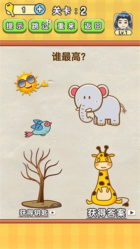 全民烧脑2游戏手机版2026是一款烧脑好玩的休闲解谜闯关游戏。这款游戏是全民烧脑系列的第二部作品,继承了这一系列经典的搞怪风格,为玩家们设置了很多脑洞大开的关卡谜题。很多关卡中的剧情和题目都能为玩家们带来忍俊不禁的幽默趣味以及意想不到的转折,让玩家在紧张刺激的解谜过程中也能享受到轻松愉快的氛围。从逻辑推理到空间想象,从文字游戏到视觉错觉,这款游戏为玩家们带来了多种不同方面的挑战。 游戏亮点 1、每一个细节都可能是解开谜题的关键,玩家需要仔细观察游戏场景,发现隐藏的线索。 2、谜题库涵盖了你能想到的所有类型,确保玩家在每一次游戏中都能感受到新鲜与刺激。 3、创意解谜,运用各种策略与技巧,甚至结合现实生活中的知识,才能解开游戏中的谜题。 游戏特色 1、无论你是解谜新手还是资深玩家,都能在这里找到适合自己的挑战,享受突破自我的喜悦。 2、每个关卡背后都隐藏着一段小故事,它们不仅是解谜的线索,更是吸引玩家深入探索的动力。 3、通过完成特定任务或挑战获得成就奖励,这种激励机制能够激发玩家们持续不断的挑战欲望。 游戏优势 1、界面简洁直观,操作方式简单易懂,无需复杂的教程即可上手,让更多人能够享受到解谜乐趣。 2、逆向解题的思维方式不仅能帮助玩家在游戏中取得胜利,更能提升现实生活中的问题解决能力。 3、谜题和剧情充满了无厘头的幽默感,让人在紧张刺激的解谜过程中也能感受到轻松愉快的氛围。 游戏玩法 1.游戏中设置的关卡特别多,玩家可以充分的挑战,在其中感受无尽的乐趣。 2.关卡中都会有提示,玩家在答题时如果实在没有思路可以根据提示来找出答案。 3.回答不了的可以跳过,就算卡住也没关系,玩家可以重新来过,多去尝试就能通过了。 4.答得题目多了以后就可以找到它的规律了,有助于提高你的答题速度,提高答题效率。 5.游戏玩起来比较烧脑,刚开始会出现很多错误很正常,在摸清楚游戏的规则和套路之后就很容易答对了。 6.答题的时候认真看题,题目有很多套路,会引导你选择错误的选项,不要被它所迷惑,发挥你的想象力,来找到答案。 游戏测评 全民烧脑2带来了数百个精心设计的关卡,每一关都是对玩家智慧的极限挑战。这些关卡的难度由简至难,从简单易懂的入门级别,到让人挠头的高难度关卡,游戏循序渐进地引导玩家拓展思维边界。很多关卡的谜题设计鼓励玩家们跳出传统思维框架,尝试从不同角度审视问题。 |