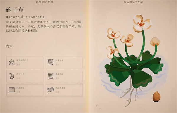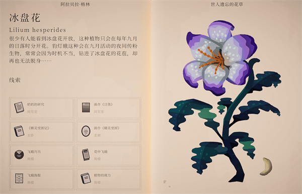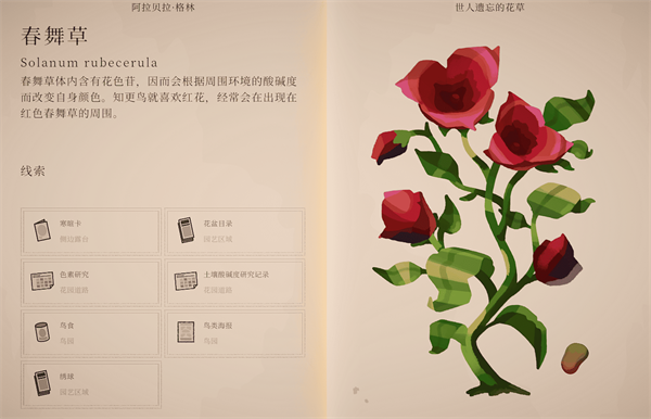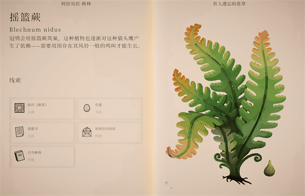 波坦尼庄园游戏官方版是一款以植物学为核心的治愈系益智解谜游戏,玩家将化身植物学家,在一座荒废却宏伟的庄园中,通过解读植物特性、杂交培育新品种并破解层层关卡,逐步唤醒沉睡的花园生态。游戏将逻辑解谜与自然探索巧妙结合,每一处谜题都围绕植物生长与组合展开,既富有思考深度,又节奏舒缓。手绘风格的精致画面与温和悠扬的配乐共同营造出宁静而专注的氛围,随着游戏推进,玩家还将解锁更多植物、工具与区域,持续拓展庄园规模,打造一个充满生命力的植物天堂。 波坦尼庄园手机版游戏攻略 1、进入游戏后选择“开始”,左侧虚拟按键用于控制角色移动,右侧按键可自由旋转视角。房间内的柜子上放着一封信,点击即可查看,了解基础背景信息。 2、随后可打开柜子旁的包裹,获得一本重要的植物学书籍,书中不仅记录了庄园各个房间的分布,还收录了详细的植物图鉴,是后续探索与解谜的关键参考。 3、根据书籍与新手教程指引,玩家可以逐步掌握植物的种植方法,只需按照提示完成操作即可顺利培育植物。 4、完成对应的种植任务后,玩家将获得丰富奖励。需要注意的是,不同植物的开花条件各不相同,部分植物必须在特定温度下才能顺利生长。 5、当温度不符合需求时,可通过开启加温或散热装置进行调节,点击相应按键即可快速改变环境温度。 6、在熟悉基础玩法后,玩家还可以持续探索庄园周围区域,解锁新的场景与空间,开启更多富有挑战与惊喜的冒险内容。 波坦尼庄园手机版植物位置介绍 1、冰盘花 种子位置 二楼 ②阅览室密室 奶奶的地窖 成就:冰盘花 在飞蛾月历确认画作《精灵受困》上的豹灯蛾,在奶奶的地窖找到豹灯蛾的生长范围9月的日落颜色蓝、黄、橙、红。在阁楼投影对应颜色的幻灯片引诱感光幼苗开花。 2、蓝厄菌 种子位置 二楼 ③书房 成就:蓝厄菌 将蓝厄菌幼苗放在正厅被根部寄生植物附身的大树下面,让食肉蘑菇摄食寄生植物。 3、摇篮蕨 种子位置 二楼 ⑤主卧 成就:摇篮蕨 辨别画作《蕨类》上的冠鸮蛋,在阁楼弹奏伴生鸟冠鸮的自然音乐E C D E G F。 4、碗子草 种子位置 二楼 ⑧阁楼上楼到 三楼③阁楼 成就:碗子草 把水温调整到碗子草生长的弗鲁姆河温度25摄氏度,把阁楼的锈猪放在浴缸里并放水,让碗子草幼苗吸收生长需要的铜绣。 5、春舞草 种子位置 户外 ⑭亭子 成就:春舞草 在鸟类海报确认花园道路栖息的知更鸟授粉红花,确认适宜红花生长的pH 12-14内的唯一组合砂岩盆+海藻pH 13.2。把砂岩盆种植并浇水、海藻滋润过的幼苗放在鸟园内,用两个鸟食盆交替引诱花园道路鸟巢里的知更鸟跟随到鸟园授粉。 6、愚人青 种子位置 户外 ⑳侧边露台 成就:愚人青 成就:咕呱咕呱 用在户外 ⑲水园捡到的把手打开愚人青生长的⑱山洞,把⑰船库的电报机和愚人青的幼苗放进山洞,弹奏愚人青发出光芒的摩斯密码”注意“对应KA 。 7、心搏花 种子位置 户外 ⑰船库 成就:心搏花 找到心搏花籽对应的“野地”小动物红松鼠,播放红松鼠睡眠心率120对应的120bpm的《喜乐草地》唱桶在留声机。 游戏亮点 1、海量不同种类的花卉等待玩家种植,自由布置你的庄园。 2、打造百花齐放的梦幻庄园。 3、充满创意的种植与成熟谜题,每一次游玩都充满新鲜感。 游戏优势 1.有很多与植物相关的谜题等待您解决,有趣的种植过程将为您带来新的体验。 2.每种植物都有不同的开花条件,你想要探索,休闲治疗游戏将为您提供最有趣的游戏过程。 3.许多物品在庄园中发现和找到,更多的谜题挑战将为您提供最好的冒险。 游戏评价 充满巧思的谜题设置。本作的解谜主题是让各种虚构出来的植物开花,为此 |