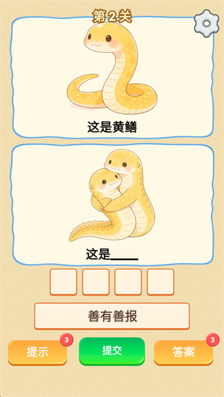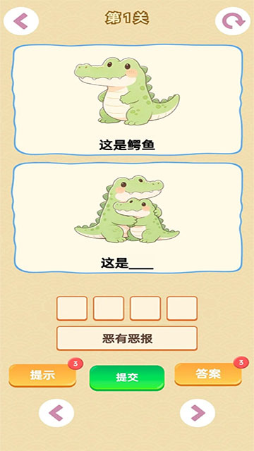 谐音梗游戏的整体操作玩法还是比较轻松简单的,还设有海量的关卡等你来挑战。当然,这里游戏主要考验的还是谐音梗,需要玩家根据不同图片内容,发挥自己的联想能力,成功猜出谜题。 |