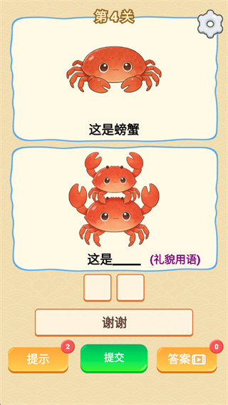 谐音梗游戏手机版2026是一款以图片猜词为核心玩法的休闲益智手游。游戏通过卡通图片与语言梗的结合,让玩家在轻松氛围中不断挑战自己的思维能力和语感。目前游戏已更新众多关卡,并持续增加新内容,关卡难度循序渐进,竖屏操作与点击式玩法,使其非常适合碎片化时间游玩,无需复杂学习成本。 游戏特色 1、游戏以谐音梗作为主题,会带给玩家一种发散思维的考验。 2、探索语言和韵律的谜题,玩家可以在这里得到丰富的体验。 3、各种精心设计的文字解谜关卡,让大家可以自由游玩。 4、支持玩家自定义谐音谜题,创作专属脑洞关卡分享给好友挑战。 5、既考验谐音敏感度,又锻炼逻辑联想能力,不同难度对应不同脑洞维度。 6、单局解谜时长仅1-2分钟,无需长时间投入,随开随停解压 7、全程仅需点击选字或填字完成答题,操作逻辑直观,无复杂规则与操控门槛。 谐音梗游戏部分关卡攻略 1、第二关 2、第三关 3、第四关 4、第五关 5、第六关 游戏亮点 1、爆笑画面:游戏结合了超多爆笑的手绘图画,带来快乐的视觉效果。 2、欢乐答题:欢乐趣味的简单答题玩法,等你来挑战。 3、益智闯关:益智的闯关模式,等待着玩家前来挑战,展示你的实力。 游戏优势 1、简单的解谜游戏玩法,玩家可以轻松上手这款游戏。 2、每个关卡都有不同的剧情,让获得不同的体验。 3、游戏内容还在不断更新,让玩家获得全新的游戏体验。 4、轻松欢乐的游戏音乐,非常适合玩家来放松心情。 游戏评测