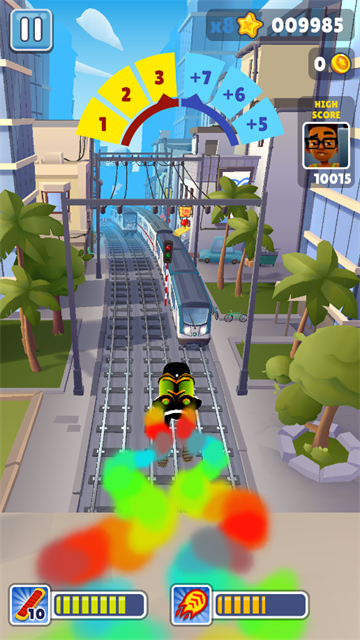 地铁跑酷黑色金币版是小编为大家找到的一款由地铁跑酷大神玩家自制的游戏版本,以地铁跑酷经典玩法为基点,将游戏中的金币魔改成了此版本的黑色金币,游戏初始角色Jake也是一身黑衣仿若黑化了一样,再搭配上金属感的铁轨,让整体游戏的画面舒适感极佳,更显跑酷的魅力;除了收集黑色的金币也别忘记了收集游戏中的字母,将字母收集完成也是有额外的奖励的!作为大神玩家魔改的一个版本,地铁跑酷黑色金币版不论从整体画面的美观性还是游戏玩法的趣味性都是很值得一试的。丰富多样的人物角色装扮等你解锁,海量滑板等你收入囊中,感兴趣的用户欢迎在当快下载地铁跑酷黑色金币版,期待您霸榜跑酷排行榜! 游戏特色 1、控制角色在地铁上驰骋,躲避所有的向你冲来的地铁,还要拾取黑色金币。 2、精彩的全服玩家同台挑战,领略不同的风景,解锁更多的道具让你跑得更快。 3、众多的彩蛋随着节日的变化更新,恰逢其会,开始一场跑酷的狂欢。 4、全新的地图跑酷场景,灵活的控制自己的角色躲避更多的危险障碍物,向前冲击。 地铁跑酷黑色金币版怎么切换中文版 1、打开游戏首页,点击右上方“设置”图标 2、找到“Language” 3、下划点击“简体中文” 4、点击“OK”即可成功切换中文版 地铁跑酷黑色金币版玩法介绍 1、从当快下载安装地铁跑酷黑色金币版至手机,点击进入游戏,先选择年龄 2、点击“tap to play”即可开始您的跑酷之旅 3、通过简单的上下左右划动屏幕操控游戏人物左右移动或是向上跳向下蹲躲避障碍物 4、不幸撞上障碍物被警察追上的花游戏就结束了,可以通过使用“钥匙”复活 地铁跑酷黑色金币版道具详解 1、滑板(Hoverboard) 在游戏过程中双击屏幕,即可激活滑板,在有效时间内拥有两条生命。 2、金币倍数(Score Booster) 增加游戏币倍数,可临时使游戏币转为得分的倍数增加。 3、路程加速(Headstart) 游戏开始时快速飞行,在游戏开始时可点击使用。 4、飞行背包(Jetpack Upgrade) 获得飞行背包后,在道具有效时间内,可在空中飞行,不会遇到障碍物及火车,但仍然可收集金币。 5、运动鞋(Super Sneakers Upgrade) 获得运动鞋后,在道具有效时间内,可以跳得比平常高。如果玩家跳的时候头碰到天花板,又没有使用滑板,游戏将会完结。 6、磁铁(Coin Magnet Upgrade) 在道具有效时间内,可以收集游戏中的所有金币。 7、双倍得分(2X Multiplier Upgrade) 在道具有效时间内,每收集一个金币即可获得两倍于原先倍数的得分。 游戏优势 1、丰富多彩的动作特效为您带来最震撼的跑酷冒险,让您感受跑步的魅力; 2、有各种各样的游戏地图,每个城市都可以成为游戏中的地图,这非常令人兴奋; 3、控制角色顺利执行任务,这样您就可以成功完成每个任务并解锁道具! 游戏亮点 1、全新的现代地图,独特的黑色金币,带给你全新的跑酷体验; 2、出色的跑酷玩法,让玩家在游戏中体验快节奏、刺激的跑酷体验; 3、多种游戏模式,让玩家在游戏中有更多的选择和挑战; 4、高度可玩性和回放性,让玩家可以一直重复游戏,挑战自我。 |