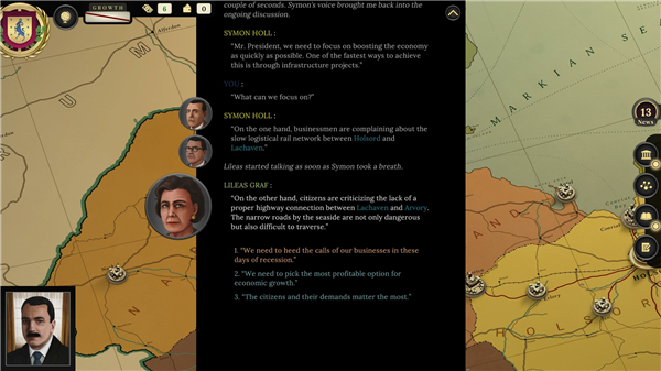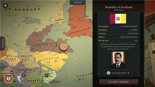 宗主国游戏汉化版英文名也叫做Suzerain,是一款由Torpor Games制作而成的Steam移植手机政治策略经营类游戏,这款游戏的故事舞台设定在虚构国家索德国(Sordland),玩家在这里将会扮演新任总统安东·雷恩,将会面临各种政治、社会挑战,玩家需要在这里与各大内阁成员以及其他权要进行政治上的对话互动,从而能够更好的管理自己的国家。 宗主国手机汉化破解版能够为玩家提供约20万字的庞大剧情文本并且包括了:国内政治、经济政策、社会福利、外交关系与军事安全等方面的内容,玩家在这里需要根据自己的想法进行一系列政治活动,是为了人民谋福利,亦或是与各大政要纸醉金迷,接纳腐败全在一念之间。此外,该游戏版本并没有完成破解,需要耐心等待后续。 宗主国汉化版游戏背景 1954年,索德国在一场血腥的内战后,摆脱了长达20年的独裁统治。你将扮演极富个人魅力的年轻才俊——安东·雷恩;他迅速升任执政党最高领导人,甚至当选为索德国的新任总统,出乎所有人的意料。 饱受数十年传统势力统治之苦的民众渴求民主改革。经济局势一派混乱,政坛情势变幻莫测,还有虎视眈眈的邻近强国,军事威胁也隐隐浮现。 你能率领这个国家走出衰退吗?你能满足民众的改革呼求吗?索德国的未来取决于你的抉择。祝你好运,总统先生。 游戏特色 1、该经验类型的角度一反普通的模式,让每一个想当总统的小人物都能感受到大人物不易。 2、世界局势变幻莫测,各种暗流涌动充斥着周边的环境,你要时时刻刻注意如今国际形势。 3、通过一系列的改革,去除了内阁中的很多不好的毛病,让整个内政的管理瞬间焕然一新。 4、当总统可不是一般人能做的,不只是要顾家,还要把整个内阁的事情处理的很周到。 5、一个国家走向衰弱还是走向顽强,很多时候都取决于你的一个个决策,弹指间安定天下。 6、终极目标就是把自己的祖国壮大起来,无论是对内的管理或者各种外交都要做的很好。 宗主国汉化版怎么玩 1、打开游戏,我们点击新游戏按钮。 2、之后给自己起一个名字。 3、然后自定义角色的形象,开始发展你的国家吧。 宗主国汉化版游戏攻略 一、经济方面我们可以选择 1.沿用索尔的国有化 2.沿用阿方索的私有化 3.混合经济 由于前两任总统经济政策变来变去经济一直拉胯,导致人们觉得是宪法有问题。政治方面我们的目标为修订宪法。 二、政治方面我们可以选择不同群体合作修改宪法: 1.主要与改革派合作,同时拉拢中间派 2.主要与劳保合作,同时拉拢中间派 政治方面: 修订宪法有两个步骤: 1.议会中三分之二的同意。 2.在议会同意后独立法院也同意修改宪法。 最终才能修改宪法。 三。任何党派中都有政治倾向不一样的人,但总体可以分为以下三种: 1.倾向改革宪法的改革派 2.反对修改宪法的劳保(极端民族主义者) 3.中间派:少数民族,妇女,国内寡头等等。 而这三种人也分布在不同党派之中 四、游戏中有各种党派: 1.你所在的统一索德兰党,在议会中有大部分选票130票,是第一大党。 2.人民与正义党,70票 3.民族党40票 4.少数民族党10票 5.其他党派(包括极←的马林耶夫党和极→的索尔民族主义党),因为人数门槛没到达进入议会没有选票。 我们要修宪,就要把朋友搞得多多的,把敌人搞得少少的。 宗主国汉化版玩法介绍 1、事关重大且跌宕起伏的对话:在这部长达20万字的皇皇政治大剧中,驾驭错综复杂的对话。 2、每一项抉择都有其后果:在安全、经济、外交等等事务上做出艰难的抉择。即便是在业余时间,朋友与家人也会质疑你的信念。 3、缔结盟友,防范敌人:与各色各样拥有不同个性和思想的角色互动。 4、时刻关注时事动态:通过报道和新闻,时刻掌握索德国的局势。 5、你将会留下怎样的遗产?当你为期四年的任期届满时,这个国家将会因你的种种决定而去向何方呢 游戏优势 1.该经验类型的角度一反普通的模式,让每一个想当总统的小人物都能感受到大人物不易。 2.世界局势变幻莫测,各种暗流涌动充斥着周边的环境,你要时时刻刻注意如今国际形势。 3.通过一系列的改革,去除了内阁中的很多不好的毛病,让整个内政的管理瞬间焕然一新。 游戏亮点 1.当总统可不是一般人能做的,不只是要顾家,还要把整个内阁的事情处理的很周到。 2.一个国家走向衰弱还是走向顽强,很多时候都取决于你的一个个决策,弹指间安定天下。 3.终极目标就是把自己的祖国壮大起来,无论是对内的管理或者各种外交都要做的很好。 |