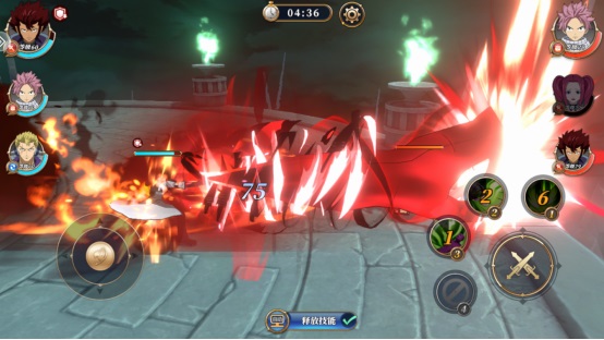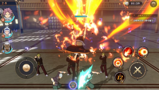 以超人气主角纳兹为例,作为一个力量型战斗角色,他的普攻连招也充满了POWER!纳兹的普攻连招由4段组成,在凶狠的左右勾拳连段后,接上一记强有力的飞踢,最后用回旋踢收场。连贯流畅,一气呵成,用好普攻也能打出爆炸输出。