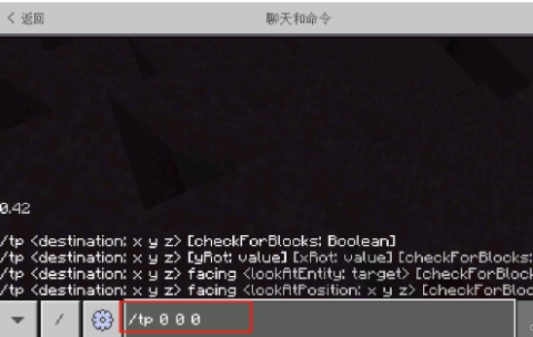 5、使用坐标传送时,需要输入坐标值,例如“0 0 0”