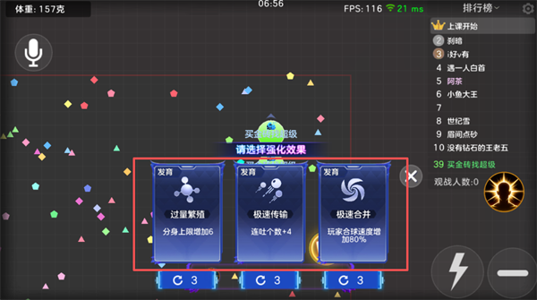 球球大作战自由无敌版是《球球大作战》最新版全新推出的创新模式玩法,它延续了“大球吃小球”的核心生存法则,同时通过50人同屏乱斗、无限复活与9分钟快节奏对抗,打造出更具爽感与策略深度的竞技体验。游戏主打轻操作与高策略并存,玩家不仅可以通过灵活走位不断成长,还能自由组合多达35种技能,如“超级魔爪”“暴风吸入”等特色能力,大幅拓展了战斗变化与操作空间,让每一局对战都充满不确定性与竞技乐趣,在轻松休闲与硬核对抗之间实现了更出色的平衡。 游戏特色 1、戳戳戳的懒癌操作 厕所里“戳戳戳”,电梯里“戳戳戳”,被窝里“戳戳戳”, 是的,即使你是一枚懒癌男(女),也只需要动用一根食指慢慢悠闲的“戳戳戳”,就可以控制球球的路径进行游戏了呢! 2、快乐有趣的策略战斗 “躲进灌木丛就不会被发现了呢”“分裂一次就能把它吃掉了吧!”“跟在大胖纸身边,好像会安全一些啊”对战的策略就在你的指尖,而小小的快乐生在你的心尖喔。 3、 我就是我的独特形象 每个球球都可以自定义外观和名字。“嘿,快到碗里来!” “看见你,我就忍不住流口水了呢!”哈哈,你没看错,这些都是球球的名字喔!快来为自己起个霸气的名字吧! 4、老少通吃的游戏伙伴 跨房间,跨楼层,跨年龄层,跨地域,在这款游戏里,你遇见谁都是有可能的喔。斗智斗勇吧,把朋友吃掉,把邻居吃掉,把陌生人吃掉……咦,怎么听起来有点邪恶呢,但真的很好玩啊!哈哈哈! 球球大作战自由无敌版玩法指南 一、玩法入口 1、在游戏主界面,点击右侧红框标注的「自由无敌版」入口,即可进入该玩法专属页面。 2、进入玩法页面后,点击下方醒目的「开始比赛」按钮,即可匹配开启50人同屏的快节奏乱斗对局。 二、对局核心机制 1、对局为50人同屏的无限复活乱斗,全程9分钟快节奏对战,玩家以体重为核心目标争夺排行榜名次。 2、对局内会随机刷新强化效果选择,可从过量繁殖、极速传输、极速合并等发育类效果中,自由构筑专属成长路线。 3、玩法内置超35款特色技能,其中炫彩级技能包含超级魔爪、千手观音、暴风吸入、宇宙吞噬者等强力效果,可随心组合搭配。 4、技能组合可触发超强增益,例如横冲直撞能提供移速300%加成、5秒无敌,撞击敌人可使其分裂80%,实现极速闪合、无敌撞击。 三、操作设置优化 1、建议在操作设置中开启快捷技巧、分身阻尼等功能,优化摇杆灵敏度,适配自由无敌版的快节奏操作需求。 四、玩法亮点 核心特色 核心机制:50人同屏,无限复活,9分钟快节奏乱斗,全程高能不拖沓。 自由构筑:超35款技能随心组合,打造专属战斗流派。 特色技能: 超级魔爪:八向钩爪,千里抓人,击杀还能永久强化技能。 暴风吸入:手搓黑洞,引力吞噬附近所有敌人,吞噬加速成长。 横冲直撞:极速闪合,无敌撞击,撞碎敌人轻松收割。 游戏玩法 大球吃小球是这个世界的真理! 变大变胖是这个世界民众的梦想! 只要合理控制球球的运动路径就可以吃掉沿路的小球球,变大变胖变强! 小球不要沮丧,飞毛腿的你,只要不停的吃,终有一天你也会成为无敌的胖纸呢! 大球也不要轻心,身为胖纸的你,横行霸道的时候千万小心暗器噢~ 游戏亮点 1、操作简单,只需要一根手指就可以完成游戏操作,不用担心游戏太复杂哦! 2、多种玩法多种策略,“躲进灌木丛就不会被发现了”“躲在大球球旁边会更安全吧”,在游戏中能探索出更多制胜宝典 3、自定义形象更有趣。每个球球都可以自定义形象和名字 4、遇见不同的玩家,可能来自不同年龄层、不同国界,一切皆有可能! 游戏优势 1、独特的球球竞技游戏,游戏中Q萌的游戏玩法; 2、游戏画面简答有趣,让玩家可以挑战各种游戏内容 3、充满艺术的关卡挑战,感受全新的休闲娱乐内容; 4、游戏中多人可以快乐的体验,自由的竞技模式; 5、全国玩家都能快乐的挑战休闲娱乐,自由的冒险战斗。 |