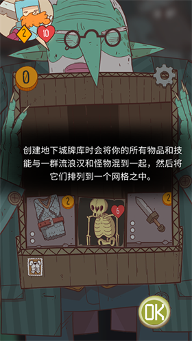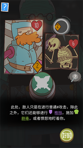 星陨传说流浪者的故事手游完整版(Krumit's Tale)是一款基于美式画风的策略卡牌冒险游戏,该游戏原本是在Steam平台上进行发售的,但现在经过官方移植,已经成功登录安卓等手机平台了。与PC端一致,星陨传说流浪者的故事手机版也是非常有趣且耐玩的,两者在玩法方面差别不大,同样都是结合了俄罗斯方块和卡牌收集战斗等要素。但与一般的策略卡牌游戏相比,本作的战斗机制可以说是非常新颖了。这不仅是因为九宫格+方块下落填充的模式让人觉得十分特别,而且在战斗过程中除了卡组构建外,还要考虑更多的要素,比如九宫格中方块的下落时机等,这对于喜爱策略元素的玩家们来说也是非常过瘾的。 此外,星陨传说流浪者的故事最新版的画风也是非常独特的,奇怪诡异到让人印象深刻,过目难忘。这种画风在玩家们冒险的过程中也提供了更多悬疑的味道,无形之中也给通关增加了不少的难度。不过由于游戏的玩法机制安排的还算合理,所以玩家也无需过于忧虑,只需要牢记在九个格子里的地下城里杀敌闯关即可。过程中遇到的所有敌人和资源都将以卡片填充的形式加入战场,而你所需要做的,就是缜密的筹划资源以打败整整9个大关的敌人。 游戏特色 1、新的卡牌游戏玩法,独特的九宫网格系统让游戏深度大大增加,玩法多变。 2、融入Roguelike元素,由程序生成冒险旅程——每次冒险进入的地下城都会有所不同。 3、5位可选英雄,随着游戏更新还会推出更多可用角色:除了通用牌库外,每位英雄都拥有超过50张独特的卡牌。 4、丰富多样的游戏内容:超过50种角色能力,超过20种不同类型的怪物,多种多样的地下城类型。 5、风格怪诞但不失深度的世界,幽默细致的对话与演出,栩栩如生的角色与NPC——不断扩张的星陨传说世界观。 6、充满感染力的中/英人声配音,中文语音支持由森中人倾情献声。 星陨传说流浪者的故事中文版怎么玩 1、打开游戏,第一项任务便是清扫地下城。 2、创建地下城牌库时会将你的所有物品和技能与一群流浪汉和怪物混到一起,然后将它们排列到一个网格之中。 3、点击目标敌人即可开战。 4、图中爱心形图标代表你的生命值。黄色钻石代表攻击力。 5、敌人不光可以进行普通攻击,还能够进行格挡、释放剧毒或者愤怒的盯着你。 6、点击绿色图标发起攻击,多数情况下是玩家先手,不过带有闪电标记的敌人会先手伏击你。 7、击败怪物后可以获得1枚金币,卖掉没用的装备也可以获得金币。 星陨传说流浪者的故事中文版能力卡牌介绍 1、酿造者 每当地下城中获得药水,都会复制一份到物品栏中; 2、怯懦猫 每次逃离战斗都会获得2点格挡; 3、冠军 进入地下城时,向地下城牌组洗入3张“炫耀肌肉”; 4、诗人 在最下面一排获得1费技能时会额外获得1张同样的卡牌; 5、小丑 弃牌时会随机重置所有场上卡牌的费用(0到5); 6、裁决 每当你受到15点伤害,在当前地牢中,你的基础+1(0/15); 7、贪婪 拥有4枚或更多金币时,基础攻击+1,否则基础攻击-1; 8、炼金术士 开始地下城时为地下城牌组洗入3张随机药水牌; 9、强壮 从地下城中获得格挡道具时回复2点生命值。 星陨传说流浪者的故事中文版玩法介绍 1、你的英雄会携带一套基础牌组(物品和技能)踏入地下城; 2、这套英雄牌组在游戏开始后,会被洗入地下城牌组(即怪物卡牌)之中,然后,游戏将从这个打乱的牌组中,随时抽出其中九张卡牌排列到3*3的网格中; 3、这些随机卡牌包括物品,技能以及怪物,玩家需要击败怪物来获得金币,然后用金币来换取地下城中的物品和技能; 4、每当网格中消掉一张卡牌,卡牌上方的卡牌便会落下,填补这张卡牌的空位,而游戏也会从牌组中抽出一张新的卡牌,补充到网格的最上方; 5、清理掉整个地下城的怪物,这一轮冒险即宣告结束,玩家会获得一定的奖励,剩余的物资也会被兑换成钻石; 6、在下一轮冒险开始前,你将可以在牌库中添加更强力的新卡牌,以及选择新的人物能力——改变游戏规则的被动属性。 星陨传说流浪者的故事中文版英雄攻略 1、攻击4张,1张1级,3张2级,第1张要扔的卡。 2、大剑,“当你造成伤害时,提高1/2/3点伤害,”战士还是不缺伤害的,“大剑III”也只是锦上添花。 3、头盔,“当你跳过1张卡牌时,获得1/2/3点护盾,”战士的核心卡,中期升到II后就能弃牌叠甲恢复耐力,再配合几张特殊攻击卡,打出防守反击的特点。能同时装备几个头盔。 4、充能,“获得1点行动力,获得1/3/5点耐力值,下次攻击造成双倍伤害。”强,无敌,第2张要升级的卡,卡组中有2张该卡,耐力有保障,更别说双倍伤害。 5、熟练打击,“造成6/10/15点伤害,每使用过1张*基础攻击卡,则伤害-2。”强,无敌,一直用到结束都行,第1张要升级的卡,我举起锤头对着怪物的头就是“bang!”的一下,这就很舒服了。 6、格挡,“获得3/5/7点护盾,”比较不起眼的一张卡,确实也不强。 7、吹嘘,“造成3/5/7点伤害,如果击杀敌人,则升级1张*基础攻击卡”,前4个怪可以刻意用此卡斩杀,那就有4张比较强的基础攻击卡。可是这些攻击卡该扔的还是要扔,吹嘘是第2张要扔的卡,过河拆桥,兔死狗烹,杯弓蛇影,新年快乐! 战士可以凭借初始卡组安稳的度过前期,中后期有着强力的弃牌叠甲苟活能力、充能的高爆发和高耐力恢复,成型的战士真的是为所欲为。 我们也会在战士篇介绍完大部分卡牌。 8、专注打击,造成3/5/8点伤害,本回合