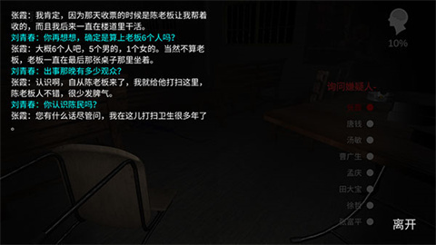 孙美琪疑案秘弑篇手机版是一款剧情类侦探解谜游戏,同时也是孙美琪疑案首个特别篇,共有三个剧情案件,分别为胜利录像厅事件、大众理发店事件和蓝火鸟网吧事件。游戏开展全新的玩法和模式,不再是一味的寻找线索关联,而是要根据盘问嫌疑人说的话,辨别他们的话语是真还是假,发现其中的端倪,再将一环一环的线索串联起来,还原当时真正发生的事件情形。喜欢孙美琪疑案系列游戏的朋友们千万不要错过这版特别篇哟! 游戏特色 1、观察挑战 手电筒照射,在较暗的屋内不断探索,耐心的观察和发现,顺利的挑战。 2、三个地点 游戏给您加入,胜利录像厅、大众理发店、蓝火鸟网吧三个地点来解锁。 3、各种剧情 通过提示对嫌疑人进行逐个询问,好玩的游戏剧情解锁,富有无限乐趣。 4、收集线索 玩家注意根据对嫌疑人的描绘,了解各种隐藏的线索,充满着超多趣味。 5、用心分析 三个案件内,会存在一定的隐藏关系,玩家认真的分析,帮助玩家闯关。 6、烧脑挑战 各种的刺激关卡和烧脑的谜题,增强游戏可玩性,玩家不断展开挑战了。 孙美琪疑案秘弑篇怎么询问悬疑人 1、进入游戏前先熟悉界面,获取线索时会有【思绪】产生,再点击【开始游戏】。 2、进入游戏场景后,可通过左侧摇杆移动,继续点击【询问嫌疑人】。 3、可选择【张霞】【唐钱】等嫌疑人进行互动,解锁不同角色的相关信息与线索。 孙美琪疑案秘弑篇剧情介绍 1、【游戏剧情一】 线人:刘队,录像厅的案子有点儿棘手。 刘青春:我去看看。 案件1:胜利录像厅,两人斗殴,1死1伤,管叉插入腹部大出血。 2、【游戏剧情二】 线人:理发店的王师傅您记得吧,他犯事儿了。 刘青春:我去理发店看看。 线人:另外,有封信,是个叫哈朵的给你的。 刘青春:… … 案件2:大众理发店,剃头师傅割喉顾客。 3、【游戏剧情三】 刘青春:哈朵,你帮我把这几个人的资料准备好,我得去现场看看。 哈朵:刘局,您亲自去看吗? 刘青春:嗯,这个案子,有点儿不对劲。 案件3:蓝火鸟网吧, 3个未成年学生,半夜猝死网吧。 孙美琪疑案秘弑篇录像机事件攻略 -地点:胜利录像厅 -案件:胜利录像厅,两人斗殴,1死1伤,管叉插入腹部大出血。 -被害人:陈民,男,43岁,广东人。录像厅老板。 -嫌疑人:唐钱,男,39岁,北京人,无业。 -调查者:刘青春 -涉案人员:陈民、唐钱、汤敏、徐哲、张富平、曹广生、孟庆、田大宝、张霞 -案情描述:录像放映途中,唐钱从外面进来,手持管叉,老板猝不及防,先被插中左侧腹部,后被踹倒在地,殴打头部,致死原因为用利器插入腹部,导致大出血并未能及时抢救。当时放映厅内有5人正在前排观看录像,发生骚乱后3人跑出录像厅,其中1人报警,其余2人在现场,拉开嫌疑人,将其制服。 尸检报告:腹部出血,导致心脏衰竭。周身有肉搏痕迹,头部受到重击,但并非致死原因。由于死因明确,并未进行医学解剖。 -死者情况:死者在北京无亲属,亲属在广州常住,自己就住录像厅内。有一妻一女,妻子陈慧平38岁,女儿陈颖13岁。录像厅房屋为西村危房改造,所有人为冯大爷。 -嫌疑人情况:嫌疑人为北京人,现居住西村6号楼3单元207两居室,与父母妻子同住,妻子汤敏,31岁,二人无子女。 【线索互动】 -如果赌神没有借给唐钱,那么唐钱的租赁记录就是伪造的,最后那一条是后加上去的。 -清洁工口供+孟庆口供→口供冲突: -孟庆说那晚一共就7个人,而张霞说不算老板有6男1女。如果孟庆没有记错的话,他和张霞有一个人在说谎。 -桌子下面粘着一万块钱现金。 胜利录像厅事件攻略配图5 -孟庆故意隐瞒一个人的存在。 -汤敏知道那沓钞票是1万元,但刘青春并没有说那是多少钱。她没去录像厅,却知道孟庆去过,还笃定他看到了老唐。 -一份离婚协议书,是唐钱与其妻子汤敏的。只有汤敏签字了,且未办理手续。 -汤敏说她在家总被老公打,所以要和唐钱离婚,其实生活并不美满,但是怕丢人才编造了谎言。 -唐钱的老婆出轨,与录像厅老板陈民通奸。 -根据徐哲的口供,家庭暴力是汤敏在说谎,而通奸的事情有可能是真的。 -拿到抽屉钥匙,打开抽屉。里面有一个存折,户头上的名字是汤敏,汇款人是陈民,金额是80万人民币,还有封信:“我在租赁记录里加了两条,你别说漏了,最好你也别说当时在场,我既然选择了和你在一起,我会搞定的,到时候就说打架误伤,老曹说他会帮我。” -曹广生承认老陈让他拉偏手。并且能不还他20万借款。 -通奸+协议书+伪造记录+存折和信+一万块钱+曹广生口供+管叉→真相: -根据现场的物证和相关人证的证词,应该是由于唐钱不同意离婚,汤敏和陈民打算利用唐钱的冲动,伪装成自卫杀人加害唐钱,利用孟庆和曹广生为他们作伪证和提供便利条件。但是没想到唐钱真的失手杀死了陈民。汤敏继续编造谎言,想摆脱干系。 游戏亮点 1、你可以用手电筒照射,在较暗的屋内进行探索。 2、在胜利录像厅、大众理发店、蓝火鸟网吧这三个地点展开了解。 3、通过提示对嫌疑人进行逐个询问,根据对嫌疑人的描绘来了解更多隐藏的线索。 4、三个案件内会有着隐藏的关系吗?这些都需要玩家来进行分析。 游戏优势 1、游戏中的谜题十分的烧脑,嫌疑人说的话也需要慎密的分析,才能找出线索。 2、烧脑的剧情将会一步步到来,运用你的思维来判断最终的答案。 3、较为简单的场景布置,却塑造出一种较为恐怖诡异的气氛。 |