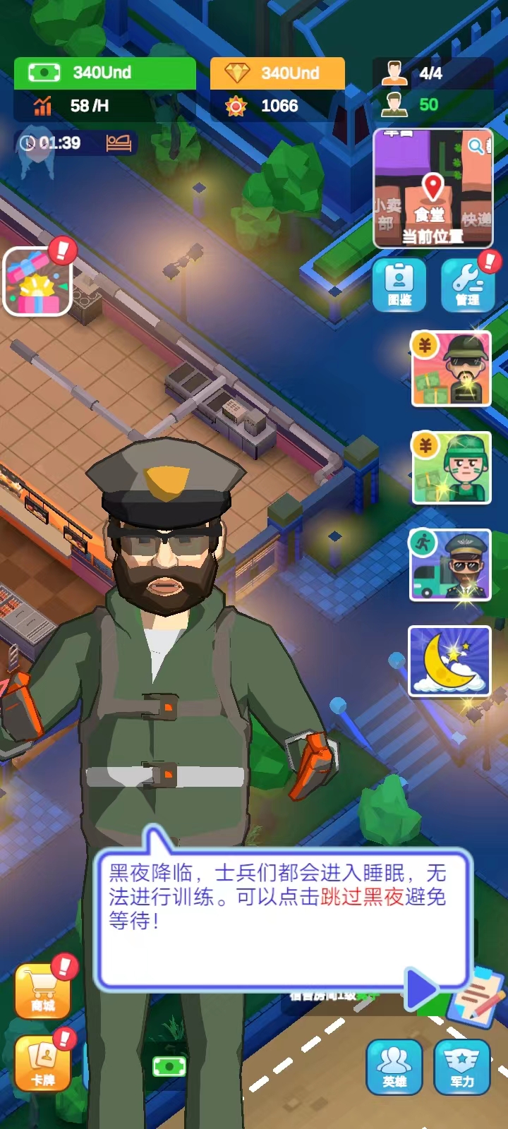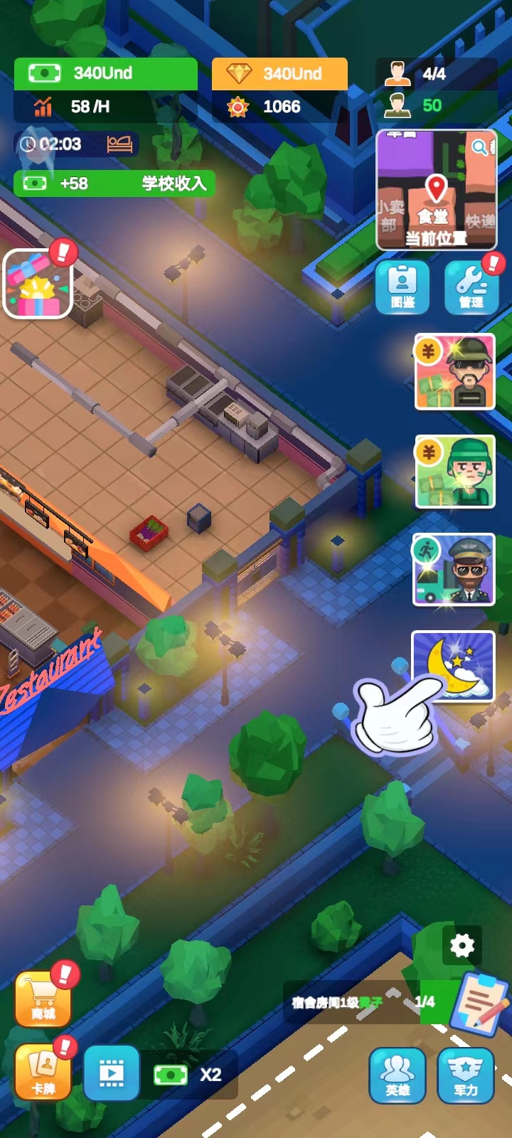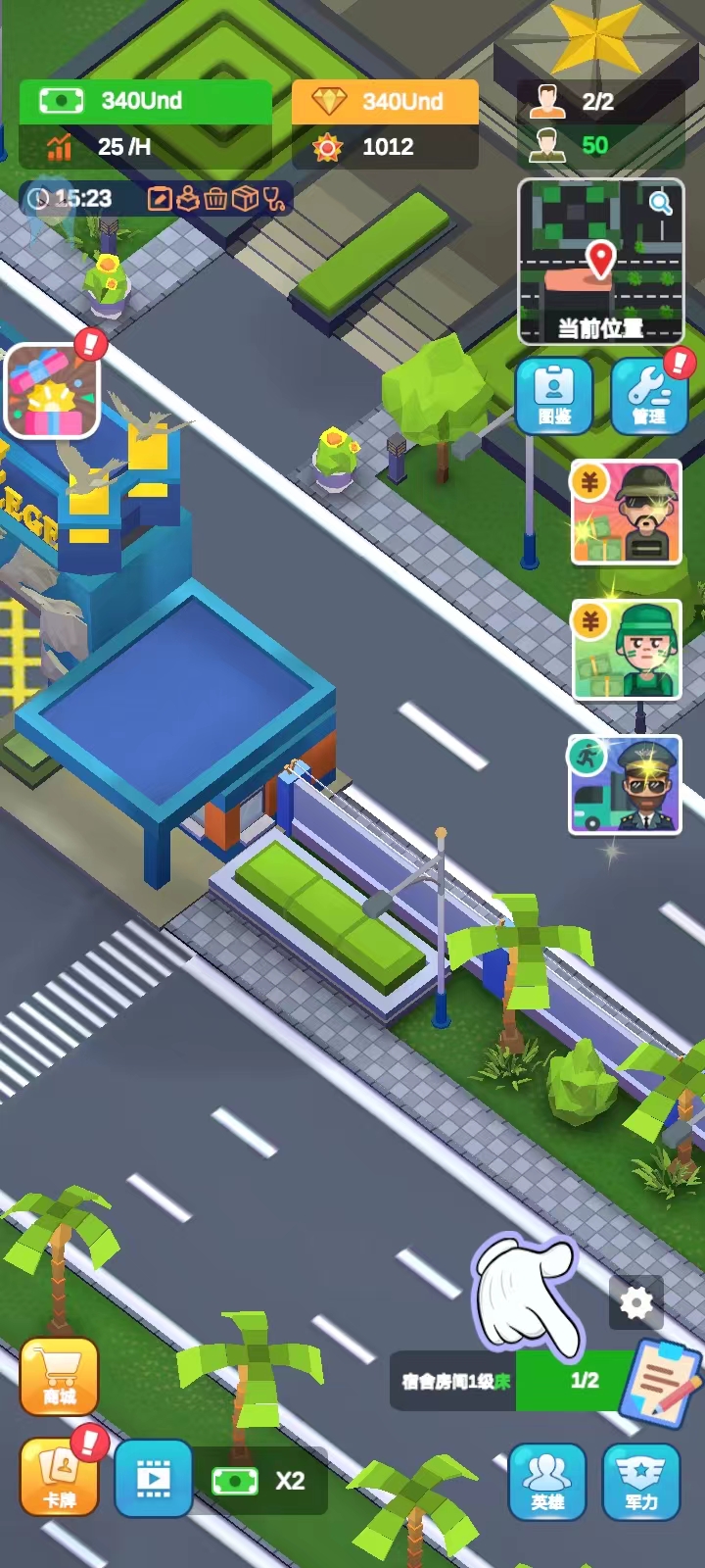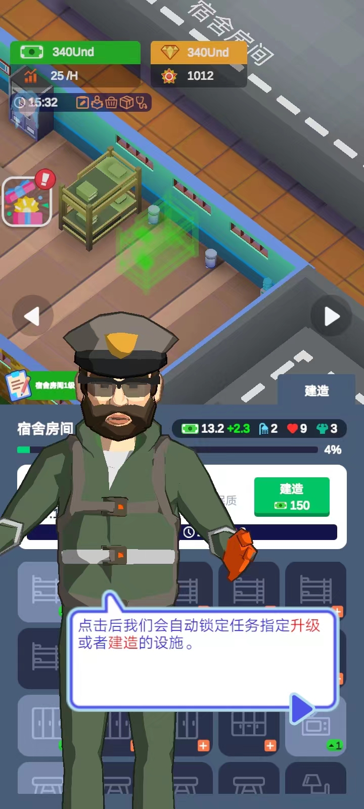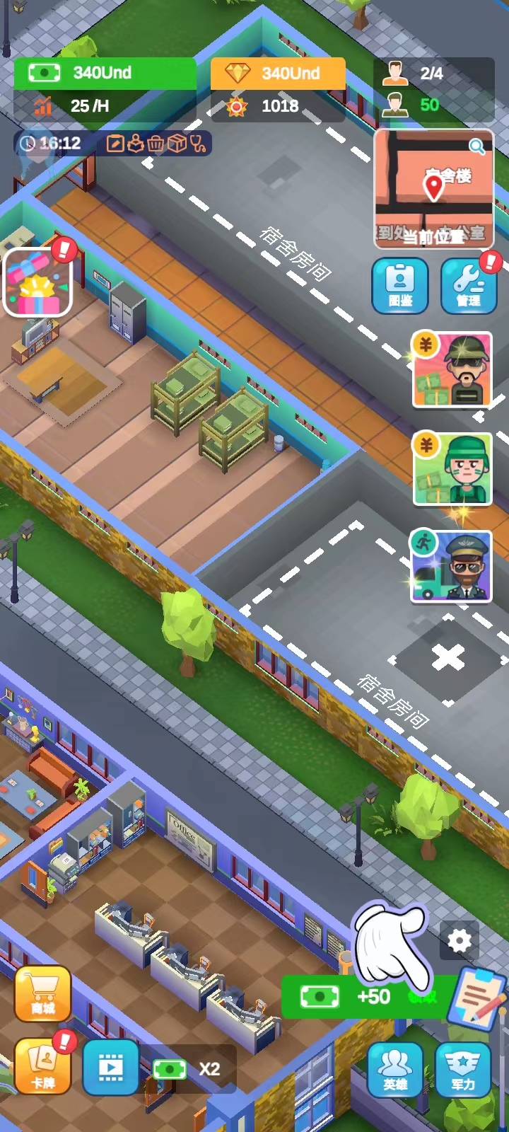 军校大亨游戏官方版是一款很好玩的军事学院模拟建造和经营手游,简单的卡通设计,场景人物非常有趣,可以带给玩家不一样的游戏体验。在游戏中,玩家将扮演军校校长,建设和管理一所军校,通过建设教学楼、宿舍、实验室等设施,招募教授和学生,制定教学计划和课程表,管理校园生活和学生活动,还要进行科研和训练,来提高学校的声誉和排名。 而随着基地中的军事训练逐步进展,玩家将获得不菲的收入并扩张营地,可以升级所有训练区的数值、速度、容量和队列规模,虽然过程如同过山车般起伏跌宕,但懒惰的学员必将遭到淘汰。感兴趣的话快来下载体验吧! 游戏特色 1、建设最先进的军事基地,放置最专业的训练设施,训练最优秀的士兵。 2、游戏将带来多样化的军事任务,多样化的挑战和完整的战略对抗和战斗。 3、游戏玩法极其简单,操作简单,可以开启一场别开生面的战争竞赛。 4、发展自己的军事力量,发起各种战略挑战,完成各种战斗和对抗。 5、完成各种具有挑战性的任务,解锁更多有趣的内容游戏。每个任务都有不同的困难要克服,建立最先进的基地。 6、要建造的建筑种类不同,每个建筑都有不同的功能,玩家需要合理的分配才能顺利进行游戏。 军校大亨游戏怎么玩 1、首先,玩家在本站下载并安装好游戏之后,打开进入; 2、进入游戏后,点击右下角的任务图标; 3、点击后游戏会自动锁定任务制定升级或者建造的设施; 4、接着点击【建造】; 5、完成任务后,再次点击右下角的任务图标,就可以领取纸币; 6、除了要完成主线任务以外,还要关注学员的需求哦~点击【管理】; 7、然后点击【士兵】,一共有五种需求,满足不了学生可能会饥饿、生病甚至退学; 8、比如说点击饱食度,然后就会在下图这个页面;点击【建造】,还可以对其进行升级,然后点击屏幕上任意一处地方可以退出这个页面; 9、黑夜降临,士兵会进入睡眠模式,无法进行训练,我们可以跳过黑夜,这样就可以避免等待;而每次跳过黑夜,游戏都会给一笔资金补贴; 10、点击右方的黑夜图标; 11、就可以进行跳过。 游戏亮点 1、报到处 叮~叮~精英报道等你训练; 2、教学楼 士兵学习基地,丰富知识能使士兵打仗事半功倍; 3、航炮训练 轰轰轰,是时候让大炮创造人间地狱了; 4、搏击训练场 控制心跳,保持体力,练就一身武艺轻松取胜; 5、飞行训练场 踏出直升机,观察四周,然后沿着绳索深入丛林,准备开展一场冒险; 6、坦克射击场 汉子(和女汉子)专用,驾驶坦克发射大炮,造成惊人伤害,大杀四方; 7、障碍跑训练场 面向放置资本家的真正冒险,包含吊货网、单杠、泥潭和绳索攀登-足以证明你的强健体魄; 8、炸药训练 拔掉拉针,扔出手榴弹,以免丢掉自己的小命,然后欣赏手榴弹划出弧线,轰然爆炸; 9、医疗室 您的专业后援团!顶级医生快速治疗; 10、游泳馆 你必须自信地面对狂风巨浪,为拥抱大海做好准备; 11、空降训练场 只有当你脱离初阶学员的行列,才能从飞机上自由落体,并降落在目标区域,大亨无需申请; 12、军事基地 丰富的教育资源,强大的军事系统、满满的黑科技等你开发。 游戏优势 1、军事题材模拟游戏,打造最大型的军事基地,培养军官; 2、很多十分严酷的训练项目,完成挑战任务,惊喜不断; 3、各种各样的军事任务,等你来完成,参与军事比赛,赢得冠军。 更新日志 v1.6.1版本 修复与改进 |