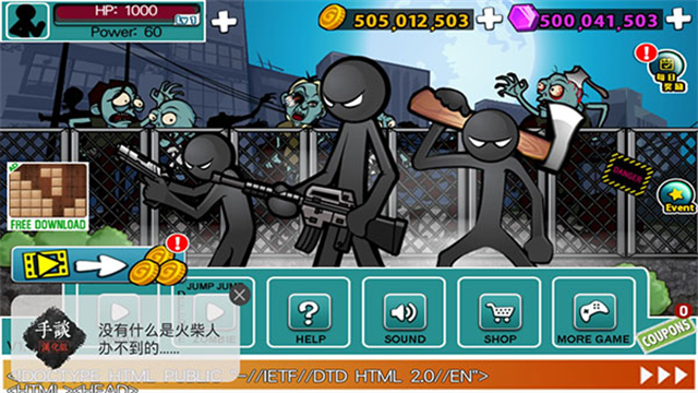愤怒的火柴人5国际服最新版(Anger of Stick 5)是一款以火柴人为题材的动作格斗类游戏,游戏中玩家将化身为一个怒气逼人的火柴人,一路上过关斩将,通过华丽的格斗技术打败源源不断的敌人,更可以肆意破坏周边的场景物品,获取各种金币钻石!还可以通过轻手、轻脚、重手、重脚等方式来击杀敌人,用精致的连招和炫酷的技巧,也可以打出街霸的感觉。与前作相比,该版本玩法内容更加丰富,内容装备更加的全面,并且还支持团队模式和个人战斗;但是游戏画面保持了火柴人系列一贯的特色,在主角战斗上加入更多动作招式,特别是物理按键的增多,让玩家们可以更加精准的控制火柴人各种动作,自己创造各种连击,给您带来无与伦比的游戏乐趣! 游戏特色 1、街头格斗 精致打造:画面中无论是主角火柴人还是对手,造型几乎一模一样,只不过在颜色上做了处理,格斗时的逼真的动态效果。 2、代入感强烈,敌人倒下时血花四溅的特效,有些违和,但也不是特别血腥,儿童还是适宜的。 3、游戏在操作玩法上,跟前几作也基本一样,刚开始同样会有非常详细的新手教程。 4、在本作中,一开始你可以选择九个不同的火柴人角色开始战斗,单人闯关模式和团队战斗两大模式任你选择,丰富的火柴人角色绝对拥有让人目不暇接的视觉感受。 5、在团队战斗中,最多可以出现四个火柴人角色,同时我们还可以对火柴人不断的升级,超过600个等级,200种不同的敌人和层出不穷的大BOSS,在等待着大家的挑战,可玩性极高。 游戏亮点 1、StickMan游戏: 愤怒的火柴人2,愤怒的火柴人3,愤怒的火柴人4,愤怒的火柴人5 2、方案 一群奇怪的敌人出现在城市,一直以无辜的人为实验工具。 许多人变成了僵尸,所以英雄和他的朋友们应该拯救人民,消除敌人。 3、收集各位同事! - 请收集6种可靠的研究员。 - 您可以安排舞台与总共3名研究员。 4、RPG的成长要素 - 升级系统经验(EXP)。 5、您可以享受单一模式和僵尸模式。 实现了各种动作和现实行动。 愤怒的火柴人5游戏攻略 动作 愤怒的棒,其逼真的战斗和130多个战斗动作,感觉快行动!Perfom新增加了特殊的空气组合在同一时间,战胜一切敌人! 武器 使用致命的武器和UZI,M1911,榴弹发射器,SPAS-12,SG550,雷明顿870,火焰喷射器,雷枪,小枪,蝙蝠,和剑之间的选择!这些直升机和机器人克服这些涂鸦的敌人! 地图 穿过沙漠,城市和森林在你的追求,使世界摆脱这些来势汹汹的画中人物!你甚至可以打在建筑物内! 1、回血攻略 在这款游戏中我们经常会遇到快被打死的情况,那么在这个时候我们就需要花费一些金币去购买血量了。 首先,当我们的血量已经快到最低的时候,我们可以点击右上角暂停键 然后会跳出来一个页面,在这里我们选择下图中小编标红的位置,就可以把血量回满了! 2.连招攻略 以最基础的火柴人为例,赤手空拳,不带任何武器来给大家讲解一下几个连招技巧。首先我们熟悉下几个基本的按键操作。 A:踩踏 B:跳跃/膝顶 C:出拳 D:出脚 连招一:前进+跳跃(B)+出脚(D)+踩踏 这个连招使用率很高,一般来说离敌人较远的时候,就可以直接用前进+跳跃先飞过去,然后在空中出脚,直接把敌人击倒。等敌人倒下之后再马上冲过去补一脚,小兵基本上就直接吐血身亡了。 连招二:膝顶(B)+方向键 大家知道靠近敌人之后按反方向键是背摔,但是杀伤不大。所以木木一般是靠近敌人之后先来个膝顶,再按方向键把敌人给扔出去。这个连招还有个好处,扔出去的敌人可以对其他敌人直接造成伤害,扔出去一个,砸的准的话,还可以再砸倒一片。 连招三:膝顶(B)+拳(C)/脚(D) 近身作战的神技永远是膝顶,注意这个时候就不用去按方向键了,容易误操作跳起来。膝顶一下,切换成拳或脚继续打,杀伤非常可观。如果还不死,就继续踩一脚补补刀。 游戏优势 1、大量的任务等着玩家来完成,每个任务奖励都不一样; 2、简单的画风,让玩家可以更好地融入游戏中; 3、还有很多的道具可供玩家使用,非常有意思; 4、玩家还能学习不同的格斗技巧,让自己可以更好地进行游戏; 5、游戏中的武器玩家也可以自由选择,没有限制。 更新日志 v1.1.91版本 -小错误修复 |