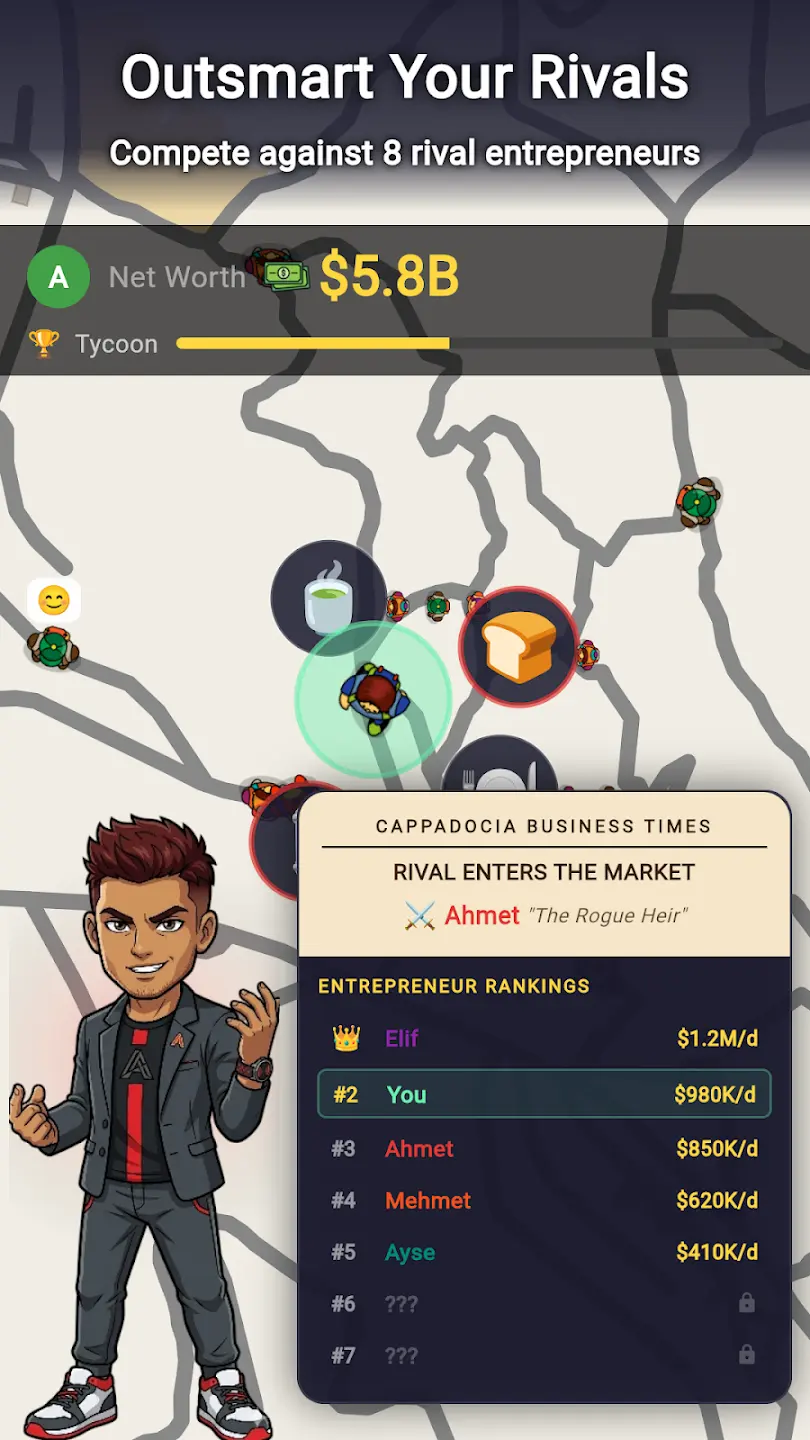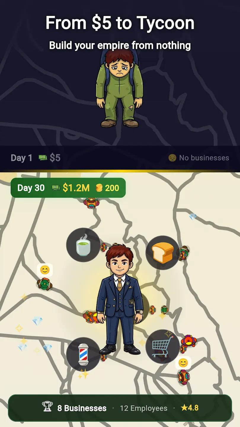 人生模拟闲置商业大亨手机版是一款精彩的商业模拟游戏,在这里,玩家将通过经营自己的公司、挑战对手、制定计划、提升实力和体验商战,展开一场属于自己的商业帝国征程。 游戏特色 1、【自由操作】 您可以在游戏中享受完全的自由,您可以为所欲为,娱乐室和用餐区一应俱全,形成你喜欢的建筑布局。 2、【企业聚会】 有各种各样的业务,你可能熟悉,但它们还处于发展阶段,所以是时候考验你的眼光了,挑选你认为有潜力的人,搬进你的大楼一起前进。 3、【休闲挂机】 你可以在游戏中观看员工的日常工作,但要注意员工的情绪,这会影响整个公司的收入。 4、【战略招标】 在最初的资本积累之后,你需要获得更多的土地,才能在财富上做大做强。小心你的竞争对手,使用最合理的策略,并尽可能少地为更好的土地付出代价。 人生模拟闲置商业大亨游戏怎么玩 1、放置经营机制:你的企业全天候 24 小时持续盈利,即使在你睡觉时也是如此。积累闲置利润,并在你醒来后扩张你的帝国! 2、业务扩张:从小做起,掌握 6 个经济等级的 15 种不同类型的业务。从默默无闻的小企业发展成为利润丰厚的巨头企业。 3、战略热力图:选址至关重要!使用高级人流量分析地图,找到人流量高的区域,最大化您的每日利润。 4、与人工智能企业家一较高下:市场竞争残酷。与 8 位实力强劲的竞争对手争夺排行榜榜首。 6、赢得五星好评:完美管理您的企业,高效服务客户,并保持最高评价。 7、征服区域:在卡帕多西亚总督辖区的 56 个行政区扩张业务。达成 13 个里程碑,从一名普通店主成长为势不可挡的商业巨头。 人生模拟闲置商业大亨游戏玩法内容 1、投资您认为有潜力的企业搬进大楼,享受白手起家的满足感。 2、征地、购城、豪车豪宅任你选择!在这之前你的赚钱才行。 3、商业的发展过程非常的系统,你需要慢慢的规划企业发展方向。 4、招募更多的员工来壮大企业的能力,员工越多你的企业发展会更快。 |