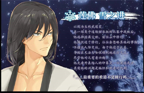 美少女万华镜异闻雪女手游直装版是一款奇幻恋爱冒险游戏,属《美少女万华镜》系列“异闻”分支,主打轻松纯爱与奇幻叙事,适合喜欢和风妖怪题材与恋爱ADV的玩家。主角莲佛雪之进比武落败后隐居雪山修行,为救白狐遭熊袭击,被雪女白雪姬所救,两人因报恩结缘,陷入人类与雪之一族的禁忌之恋,需面对冬将军的阻挠,剧情融合搞笑与温情,含5个同结局。玩法为经典文字冒险,靠选择推动剧情,有全程日语配音、精美CG与沉浸配乐,支持存档回收CG,以明快节奏讲述跨越种族的爱恋,带来轻松治愈的游玩体验。 美少女万华镜异闻雪女剧情介绍 一心专注武术的主人公莲佛雪之进,曾被求学的武馆寄予厚望,不料却输给了对手。 为了自我反省,主人公离开了尘世,在深山闭门修行。 孤独的修行渐渐迎来瓶颈,不觉间山中已隆冬。 某天,在雪山的主人公为了救助被熊袭击的雪白小动物,孤身向熊奋战,不料遭到反扑,命悬一线。 旋即,伴随着天意的邂逅,主人公的全新人生揭开序幕。 游戏特色 1. 提供多种语言支持,方便全球玩家体验。 2. 内置成就系统,玩家可以解锁各种奖励。 3. 支持云存档功能,方便玩家在不同设备间切换。 4. 提供自动播放模式,玩家可以轻松欣赏剧情。 5. 内置画廊功能,玩家可以随时回顾游戏中的精美CG。 6. 支持自定义设置,玩家可以根据喜好调整游戏参数。 美少女万华镜异闻雪女怎么玩 1、进入游戏,点击开始进入剧情; 2、在过剧情时,想要保存当前进度时,可以点击右下角第一个按钮; 3、然后只需要点击任意一个空存档位即可存档; 4、想要读取存档时,可以回到主页面,点击回顾,最后找到你要读取的存档即可。 美少女万华镜异闻雪女角色介绍 1、白雪 姬 CV:みたかりん 端庄高贵的女子,实则为雪女 坚强认真,有神秘可爱的一面;为回报主角拯救弟弟吹雪而努力,感情上体贴温柔 「嗯哼…… 阁下的事,我全都了如指掌哦」 2、莲佛 雪之进 以剑为生的武道家,道场继承权比赛战败后,隐居山中修行 沉迷修行、忽略其他事物,不擅长人际交往;外表像流浪武士,实则爱好编织与时代剧 「…… 最重要的难道不是修行吗……」 3、白雪 吹雪 CV:夏和小 白雪姬的弟弟,白色小动物,正努力修行成为出色的雪男 像小狗般亲近主角,被说 “可爱” 会生气,但仍是类似宠物的可爱存在 「噗噫,噗噫!」 4、幸田 百炼 CV:伊势 海老藏 无双直传想心流的宗家,第二十代道场主,主角的师父 认可主角实力,推荐其成为道场继承人,对笨拙的主角抱有同情 「看得过于清晰,或许未必是件好事……」 5、一本木 直人 CV:八汐優 主角的朋友,无双直传想心流门徒 与百炼之女有婚约,曾与主角争夺道场继承权,比试取胜,但认可主角的实力 「我们就相信他的选择吧…… 虽然是个有点笨拙的家伙,但他是我唯一认可的男人」 美少女万华镜异闻雪女结局攻略 主线 【开始】 到这里我们先在以下节点进行存档,方便我们一周目解锁所有结局。 ◆存档01 救助小动物 ◆存档02 接受按摩 ◆存档03 安抚姬大人继续下去 ◆存档04 不再隐藏了 ◆存档05 想要撒娇 TRUE END 美少女万华镜异闻雪女真结局怎么过 美少女万华镜异闻雪女全结局攻略 其余结局解锁如下: ◆读取存档04 修行更重要 BADEND(有场景) ◆读取存档05 想要欺负她 场景回收后结束 ◆读取存档01 不去救助 NORMAL END ◆读取存档02 不接受按摩 NORMAL END2 ◆读取存档03 心疼姬大人今天就此打住 NORMAL END3 游戏亮点 1. 欣赏美少女的日常生活:游戏中包含美少女的日常生活场景。 2. 学习技能:提高角色技能进行互动,让玩家感受她们的快乐。 3. 解锁隐藏内容:探索并完成任务以解锁隐藏的故事和角色。 4. 保存进度:经常保存游戏进度,避免意外导致游戏进度丢失。 |