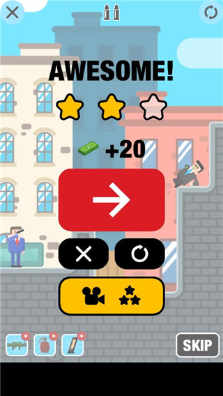 子弹先生间谍谜团安卓版(Mr Bullet)是一款非常休闲好玩的益智类动作射击闯关小游戏。不仅采用了最经典的像素风格来进行描绘,整体画面简洁细腻、人物卡通呆萌、动作打击特效真实炫酷,再搭配上超多的互动场景,轻快灵动的音效,可给予人前所未有的射击游戏视听盛宴。同时相比较于大多数同类游戏而言,子弹先生间谍谜团最新版还更是在基础的射击核心中加入了大量冒险元素、以及人质模式,PVP模式等玩法,其中多种多样不同的武器装备不但可供大家自由选择使用,然后扮演成一名打入到敌人内部的间谍,在冒险运用你的智慧和独特设计的武器去解决各种难题,用最少的子弹击杀更多敌人,窃取资料、拯救人质,感受最精准、最极致、最趣味无比的指尖操作战斗快感。另外,游戏中为丰富大家的游戏乐趣,也还提供了超多的人物角色皮肤、和每周都会更新新的武器等你来解锁收集,永远保持对游戏的新鲜感受,好玩到爱不释手哦。 游戏特色 1、【歼灭他们,拯救世界】 子弹先生在进行一项秘密任务。运用你致命的准确性和精确度来消灭坏人吧!无论是间谍、特工、僵尸、伐木工还是外星人,他们都企图统治世界,而只有一个大师可以摧毁他们并拯救世界。 2、【解锁史诗级任务】 面对如此多各具特点的敌人和级别,你足够聪明吗?你能解决所有难题吗?射出弹射的、反弹的或者直飞的子弹!用你的子弹把物体击落、引爆。制造连锁反应,尽一切可能击中目标! 3、【全新挑战在前方】 拯救人质,向敌人投掷手榴弹并进行秘密任务。无论情况如何,只要记住每次射击都算数! 4、【诱人的物理益智游戏】 只有最聪明、最迅速的玩家才能解决所有谜题!想要通关,你需要的不仅仅是准确性。速度、时间和耐心对于达成最高境界的射击大师都很重要。你能在每个级别都获得三颗星吗? 5、【间谍对阵间谍】 你是最佳最准的射手吗?在疯狂的PVP多人游戏场景中对阵其他间谍吧。选择你的武器并准备战斗! 游戏优势 1、简洁的游戏画风充满Q版的像素风格来描绘人物动态让人眼前一亮 2、多种多样不同的武器装备供玩家使用,这里融入了大量的冒险元素 3、你的任务就是拯救人质恢复和平的生活,感受趣味的射击操作 4、动用自己的智慧来解决各种各样的射击难题,将敌人消灭,救出人质 子弹先生间谍谜团游戏怎么玩 1、下载并安装本站提供的子弹先生间谍谜团最新版,打开屏幕中间的“Play”开始 2、简单的操作射击玩法,如下图所示:点击敌人即可完成射杀任务 3、游戏中提供了三种不同的道具可供使用,不同的道具威力技能不同 4、每完成一关都可获得相应的资源奖励,并解锁下一个关卡挑战哦 5、另外,游戏中还准备了超多的角色皮肤等你来收集解锁哈 游戏亮点 1、海量的游戏关卡等你来解锁,争取完成三星通关,获得更多奖励 2、多种模式选择,可以自由单人冒险闯关,也可以玩家PVP联机对战 3、购买不同的武器,通过物理弹射的方式,来消灭掩体后面的敌人 4、寻找好你的射击角度,利用弹射的方式和杀死对手,射击的角度一定好做到最精准 5、你的子弹是有限的,有时候你的目标也不仅仅是一个人,射击更谨慎去完成任务 6、简单控制方式带来不同的魅力,娱乐效果非常的真实,我们并不能直接射击对方 更新日志 v5.56版本 Bug修复 |