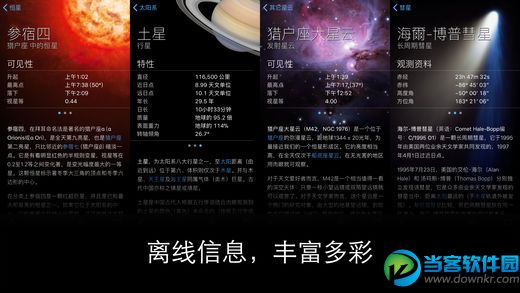 软件介绍 - Apple Watch:当您所在位置上方的星空即将发生相关事件(比如,国际空间站即将飞过)时,Sky Guide 将给您发送通知。 您也可以密切关注最新的太阳活动或在 Apple Watch 表盘上添加超精准月相复杂功能。 - 3D Touch:在搜索中通过 Peek 和 Pop 预览文章。 前往主屏幕的应用图标,即可进行快捷操作。 - 通知中心小组件:一览要点,包括太阳、月亮和行星的升起和落下时间。 - 滤镜:通过 X 射线观测天空,并探索朦胧的奇特景观(利用 3D Touch,操作更显流畅)。 - 红色夜间模式:保护您适应黑暗的视力。 - 超大恒星目录:250 万颗恒星! 可选功能: - Sky Guide 的 SUPERMASSIVE。 利用这一功能强大的加载项,您即可享用无与伦比的高清缩放功能,领略放大 50 倍后的恒星及深空美景,专享宛如电影般栩栩如生的教程学习乐趣。 SUPERMASSIVE 包含两周免费试用期,随后可选择按年订阅并自动续期。 (关于您所在国家的价格,请见应用程序内购买部分。 款项将记入您的 iTunes 账户,并且将在当前期限结束前 24 小时内从您的账户中扣除续期所需款项。 购买后,可随时通过账户设置来关闭自动续期功能。) 通过 Sky Guide 加入数百万星空爱好者行列,与星体更亲密接触。 此应用程序可能会永远改变您仰望星空的方式。 小编推荐 软件对于天文爱好者来说是一款神器,让你与星体有更亲密的接触,轻松识别各个星座,毫不费力的了解星空奥秘,此外,时间机器功能让您观察恒星的位置,既在过去又在未来。 |