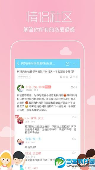 软件特色 【二人世界】共同记录每一天的恋爱时光; 【让爱成书】将恋爱记录制作成书; 【情侣社区】解答你所有的恋爱疑惑; 【聊天成图】一键保存重要的甜言蜜语; 【发起约会】快速达成每一次约会; 【蜜语聊天】甜言蜜语,只说给你听; 【私密相册】三重加密,留住精彩瞬间; 【天气提醒】爱Ta,从关心Ta的天气冷暖开始; 【纪念日】特别的爱给特别的你,特别的日子提醒特别的感动; 【应用锁】朋友圈见证你们的幸福,恋爱记守护你们的秘密; 【更多功能】就像这未知神秘的世界,就像那天你们的相遇,发现更多精彩。 小编推荐 小编为大家推荐一款非常好用的情侣恋爱聊天软件,软件能够和你们见证恋爱成长的轨迹,记录恋爱的点点滴滴,喜欢的快来下载吧! |