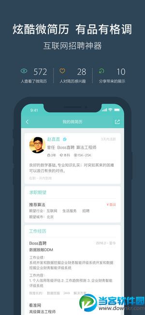 当客下载站为想进入互联网行业的朋友带来Boss直聘app官方版,与用人boss在线沟通,高效快速,欢迎苹果手机用户下载。 Boss直聘专注互联网招聘求职找工作APP,求职者与招聘者精准匹配,高速查看。随时随地,直接开聊。聊爽就约 ,拍板快,入职快。 诚挚的Boss在这里等你。最自信的牛人在这里等你。每天海量Boss和牛人找到心仪对象。不等待,不犹豫,下载后直接开聊! 【招聘更专业】专注互联网领域,每日驾到海量Boss 【职位更全面】日均在线百万职位,只要你自信! 【求职更高效】与未来上级直接沟通,当场拍板,闪电入职。 【跳槽更简单】像微信一样的app,随时随地约聊Boss 【求职更安全】设有企业屏蔽功能,完全保障你的个人隐私 【职位更精准】严格的审核机制,虚假企业零容忍 【简历更炫酷】个性化炫酷微简历,高端大气上档次 |