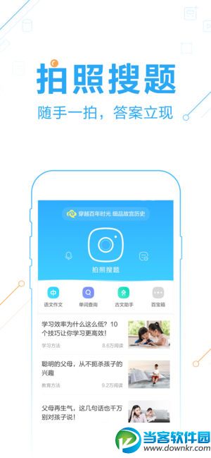 当客下载站为大家带来中小学搜题答疑辅导利器【作业帮】,拍照搜题解题,学习助手,欢迎下载。 【作业帮】3亿学生在用,智能学习平台!学霸修炼好成绩就用作业帮app! 作业帮一课,见证进步每一课,学生在线听课,高效学习利器!北上广学校老师在线直播授课,小学、初中、高中各学科难题知识点帮你攻破! -专题课:低至1元,哪个知识点不会,立即报名,很快学会 -长期班:定期发放学习优惠大礼包,帮你高效学习 -兴趣课:自然科学、手工、绘画等课程 【神马场合用作业帮?】 作为学霸的你,快用作业帮拍照搜题! 考前挠头的你,快用作业帮【1对1辅导】! 假期补习的你,快用作业帮一课! 【作业帮简介】 作业帮,让学习更简单!\(^o^)/ 超过3亿用户在用的拍照搜题软件! 题库量大、搜索速度快、答案精准的拍照搜题解题工具! 题库覆盖全国小学、初中、高中教材和练习册的题目! 在线实时【1对1作业辅导】,享受专属学习报告! 千名老师授课,可随时随地连线老师在线答疑解惑! 【作业帮功能】 1. 拍照搜题:作业一拍,秒出答案! 2. 答案解析:多种思路、过程详细,让你全面掌握各种学习解题方法,作业难题不再愁! 3. 作业辅导:“板书+语音”实时解答,覆盖数学/语文/英语/物理等学科,享有定期学习报告! 4. 作业帮一课:全学科课程任你选,老师在线教学+互动,课下答疑问老师,听不懂可以回放再看,还能得学分换奖品哦~ 5. 作业帮一练:专项练习、试卷精选、同步练习,巩固所学知识点,错题本帮你收集错题。反复练习查漏补缺,让学习更加牢固! 6. 单词查询:阅读遇到陌生英文单词?写作文想不到单词怎么说?不用慌,中英互译,长句短句,单词查询通通帮你搞定! 7. 作文搜索:英语作文不会写?中文作文在凑字?用作业帮,看中英文范文,作文全搞定! 8. 题库覆盖:数学、英语、语文、物理、化学、生物、历史、政治等,各科难题帮你解决~ 9. 求助学霸:学霸、老师在线答题,作业难题都不是问题!让你彻底爱上学习,成为学霸! |